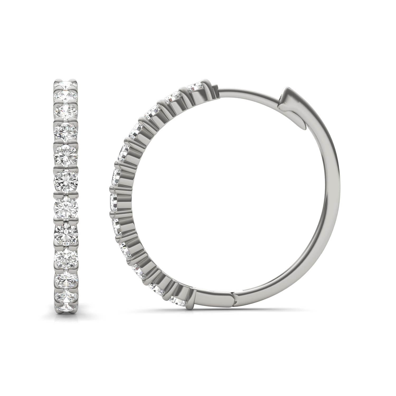 0.48 CTW DEW Round Forever One Moissanite Shared Prong Hoop Earrings in 14K White Gold