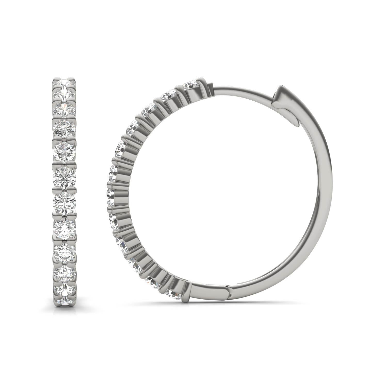 1/2 CTW Round Caydia Lab Grown Diamond Shared Prong Hoop Earrings 14K White Gold