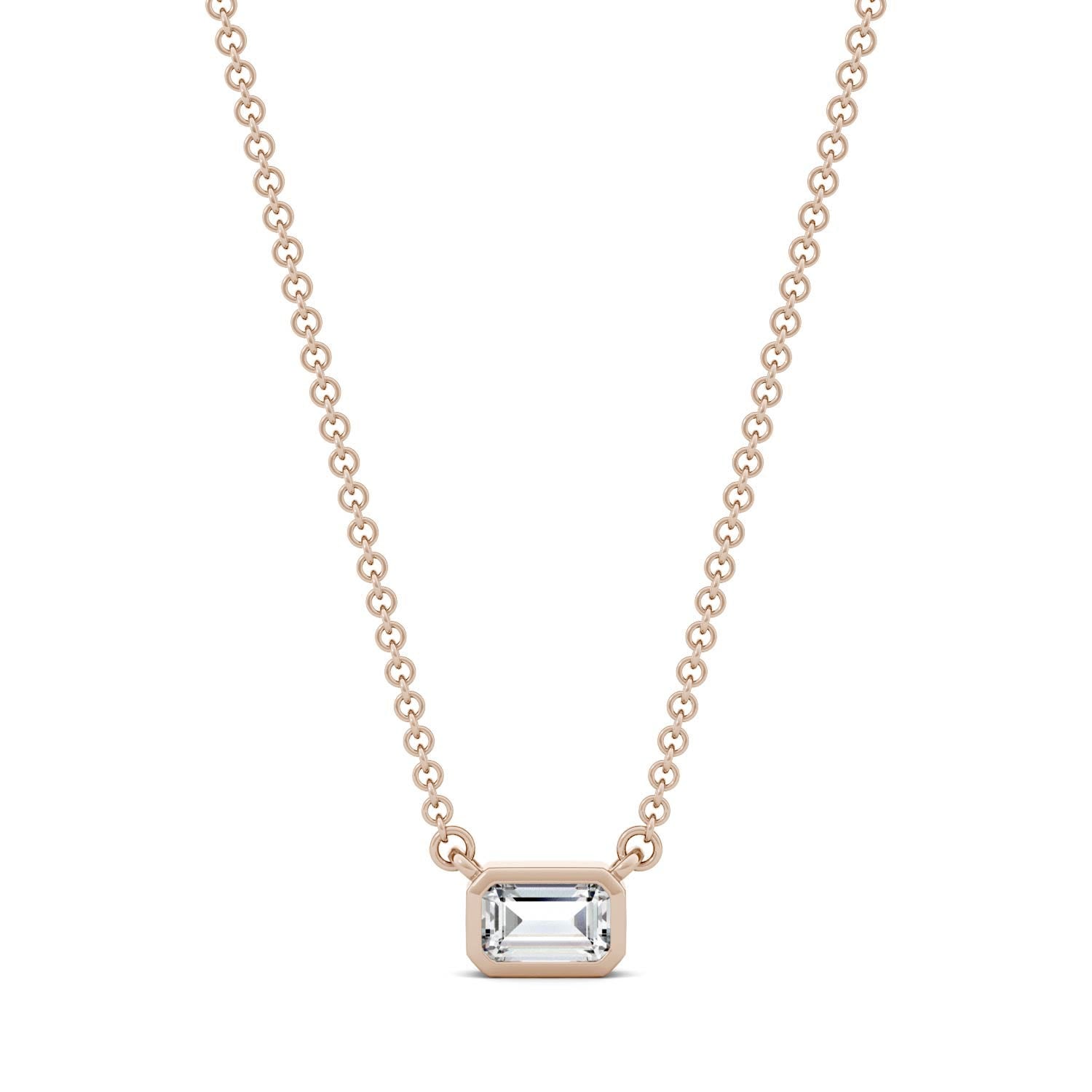 0.27 CTW DEW Emerald Forever One Moissanite East-West Bezel Necklace in 14K Rose Gold