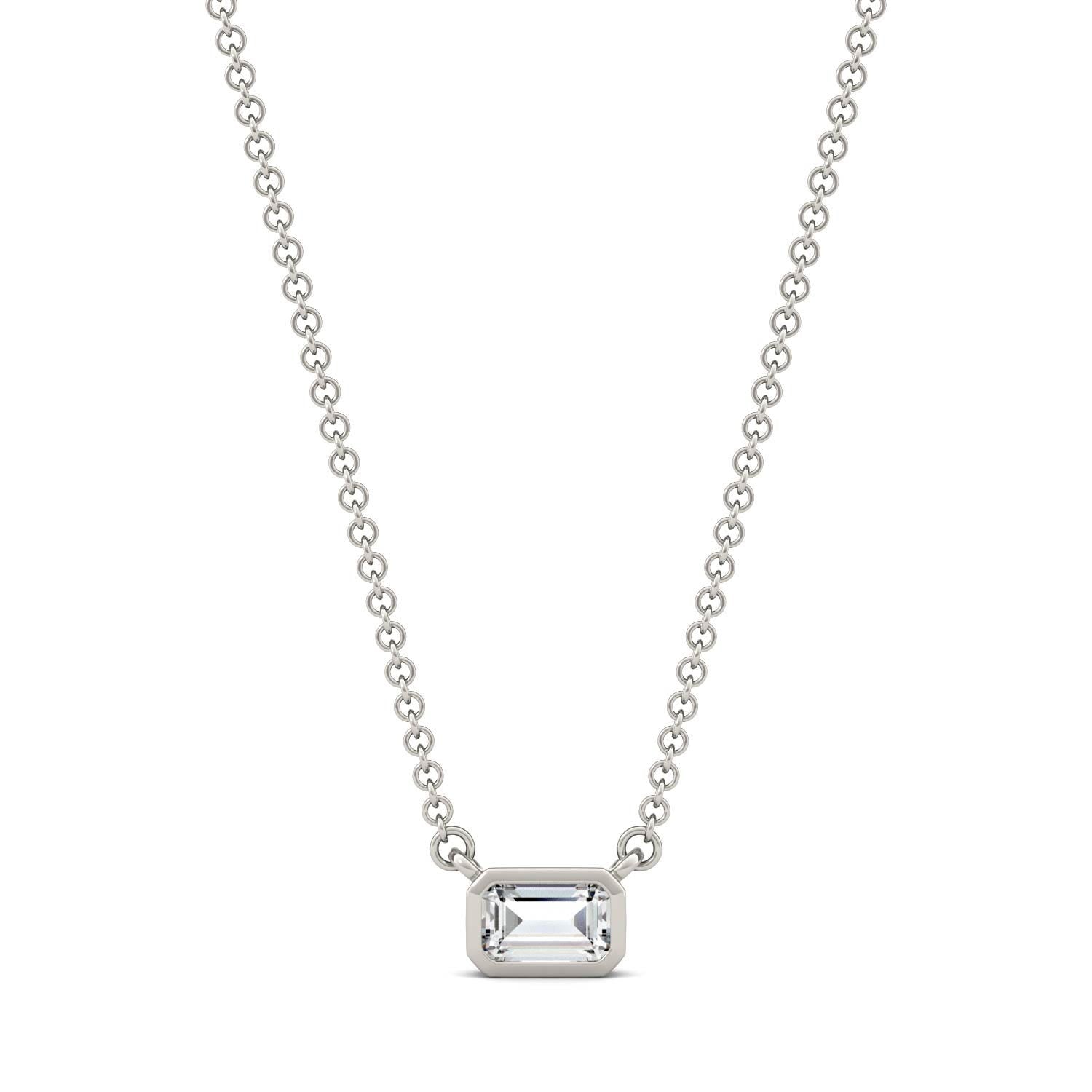 0.27 CTW DEW Emerald Forever One Moissanite East-West Bezel Necklace in 14K White Gold