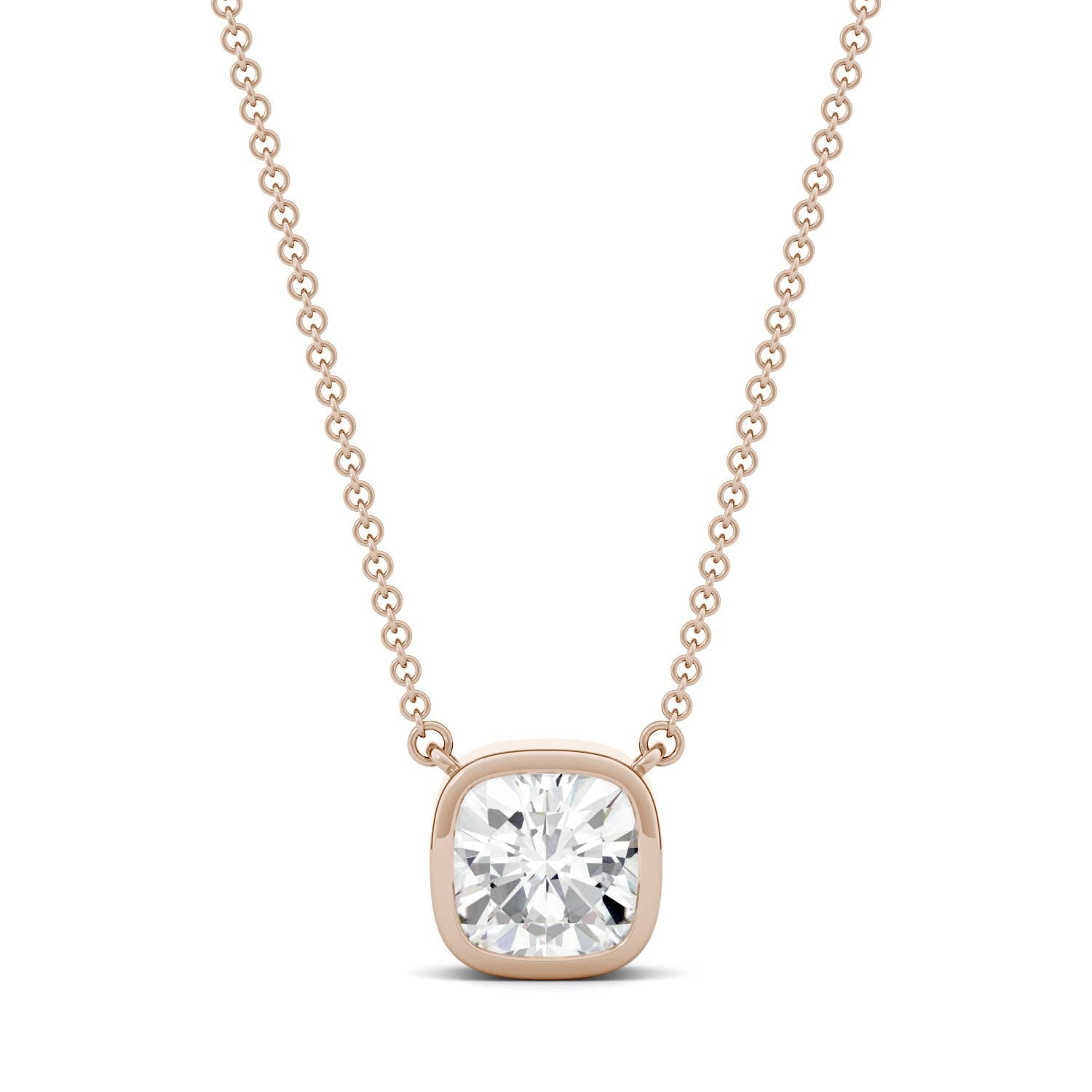 1.70 CTW DEW Cushion Forever One Moissanite Bezel Solitaire Necklace in 14K Rose Gold