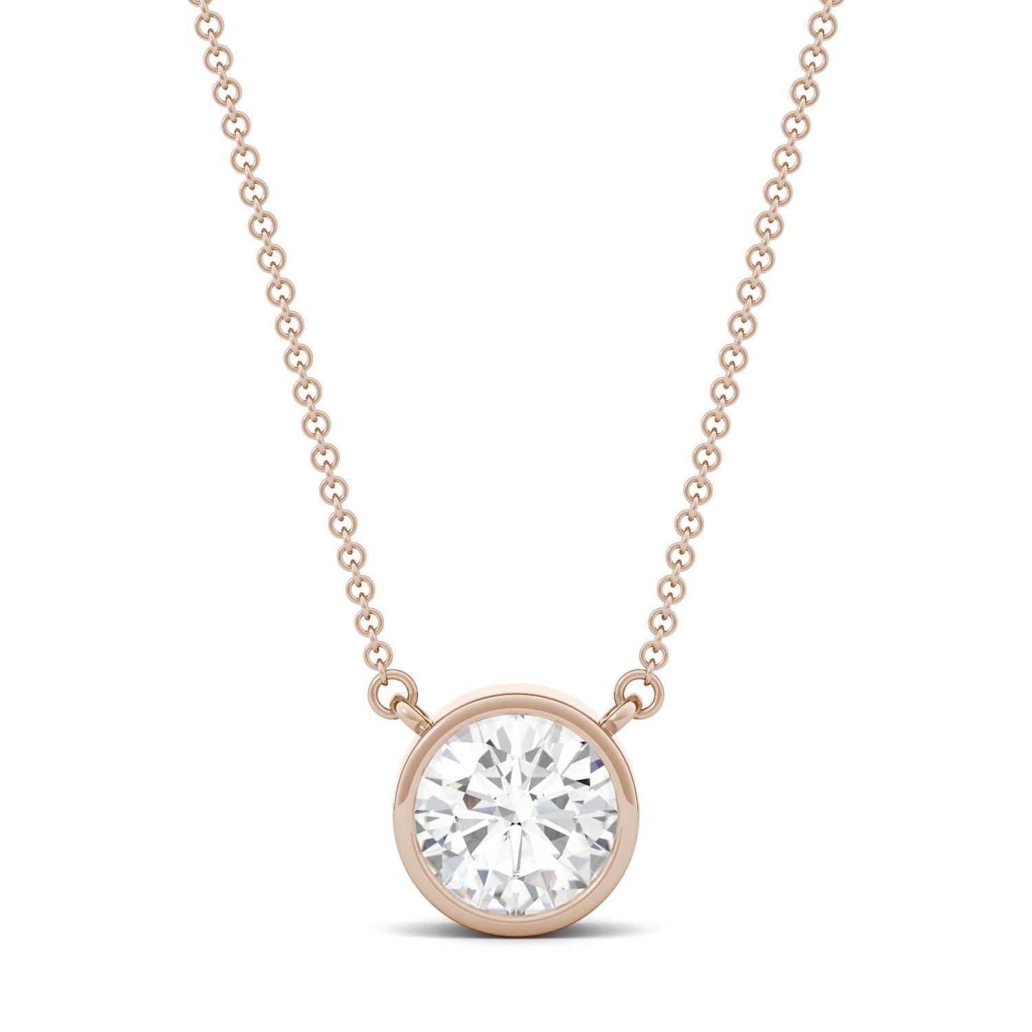 1.90 CTW DEW Round Forever One Moissanite Bezel Solitaire Necklace in 14K Rose Gold