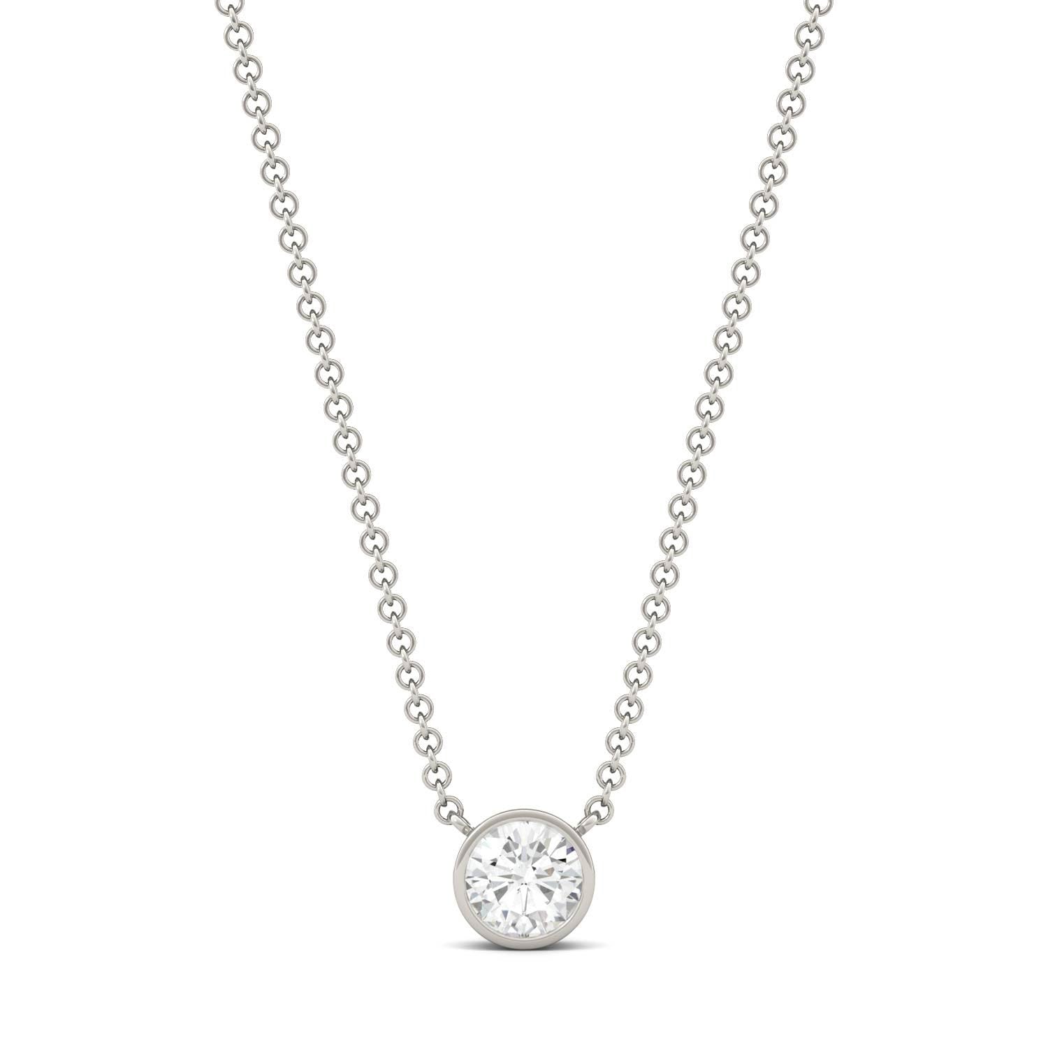 0.33 CTW DEW Round Forever One Moissanite Bezel Solitaire Necklace in 14K White Gold