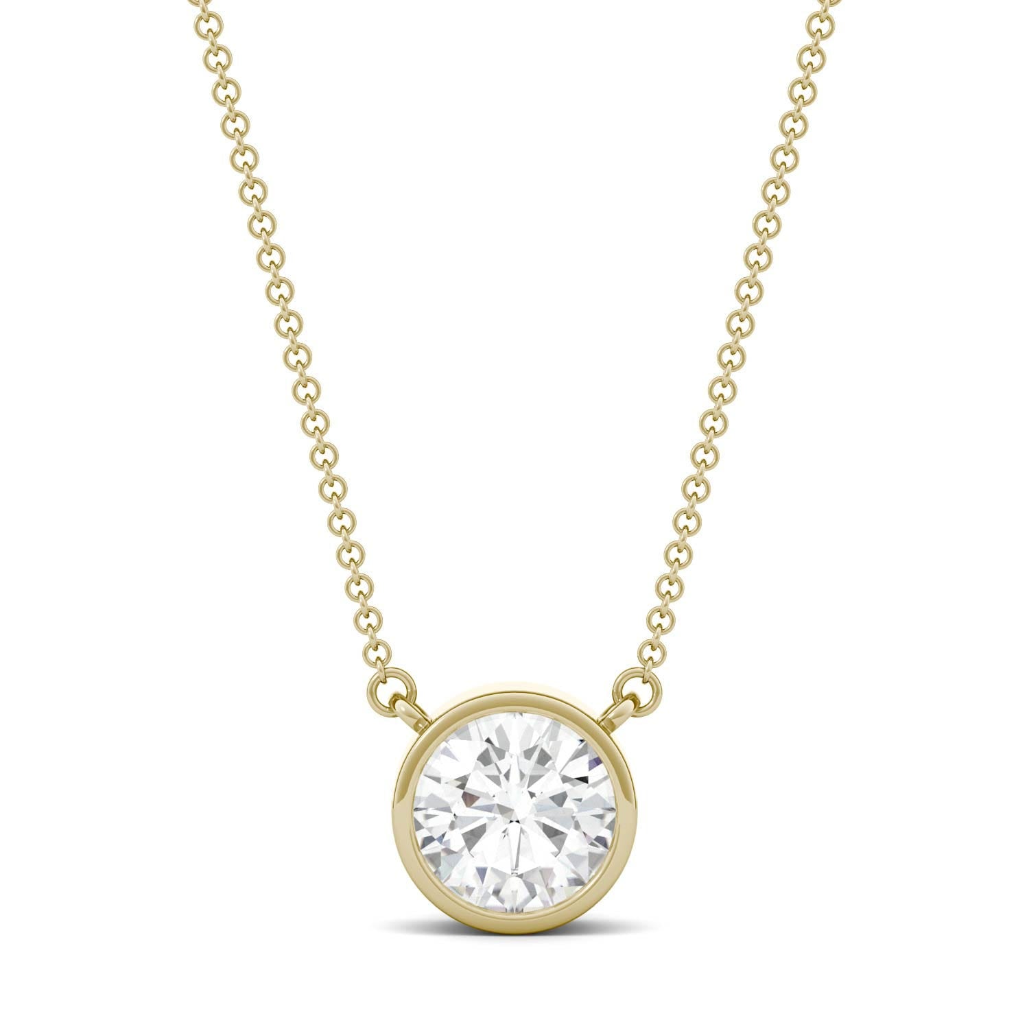1.90 CTW DEW Round Forever One Moissanite Bezel Solitaire Necklace in 14K Yellow Gold