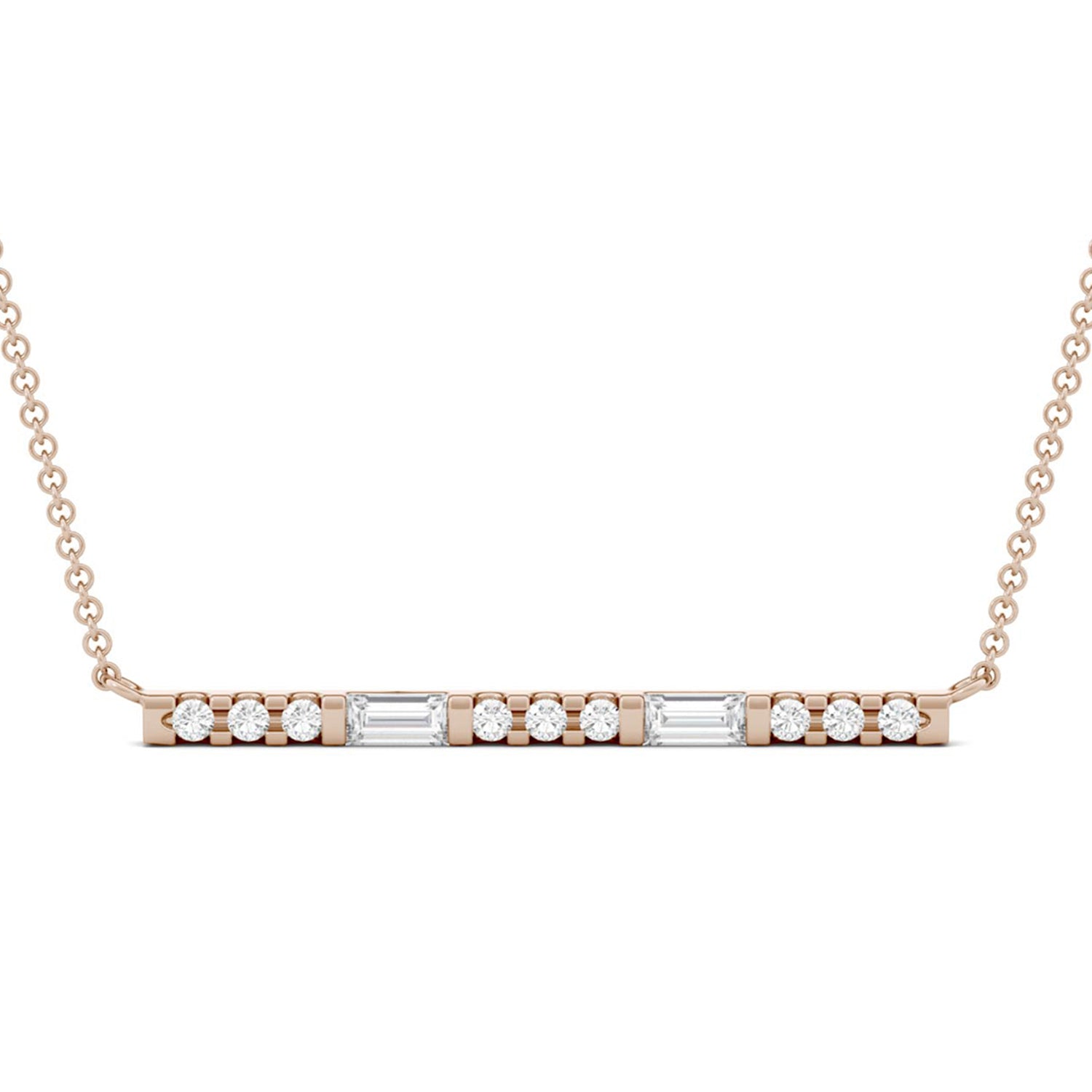 0.37 CTW DEW Straight Baguette Forever One Moissanite Horizontal Fashion Necklace in 14K Rose Gold
