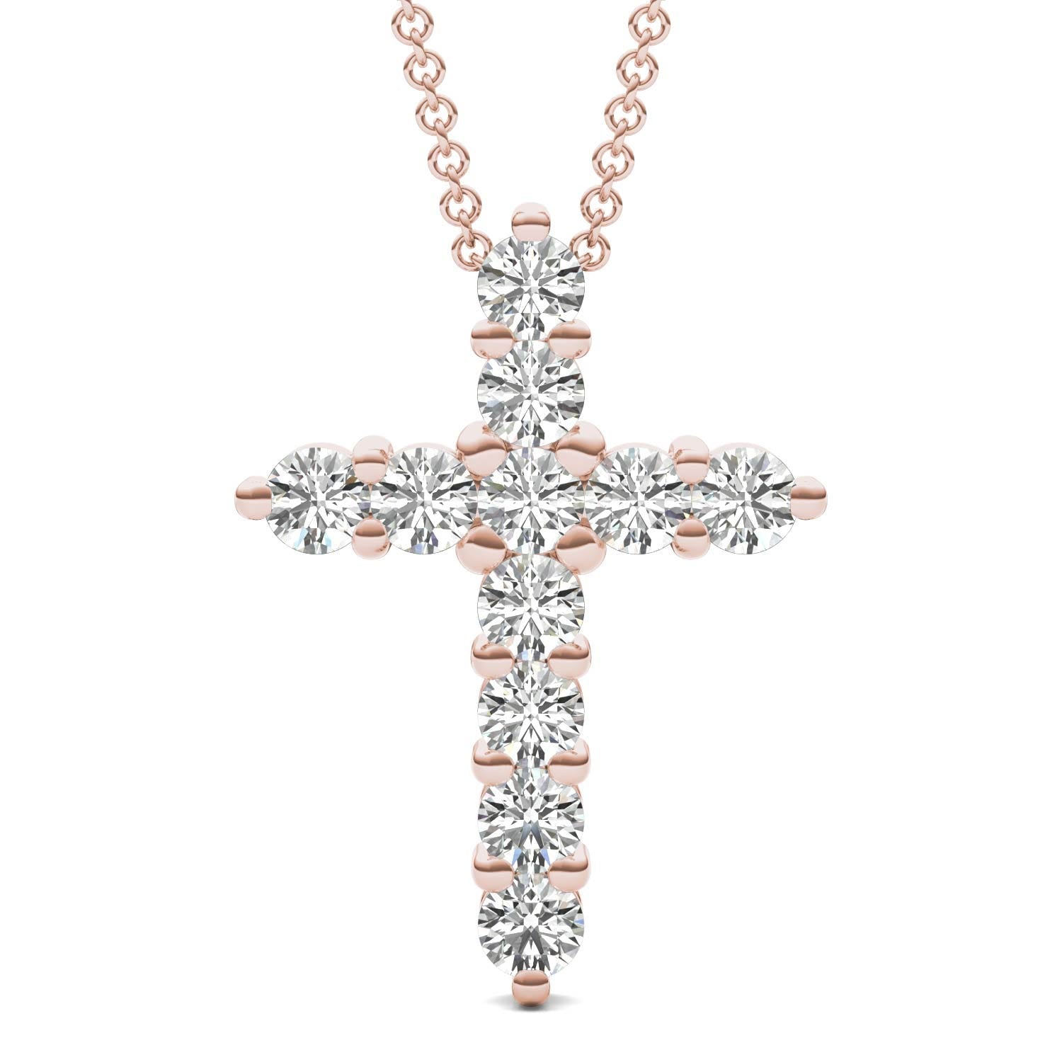 1 1/10 CTW Round Caydia Lab Grown Diamond Cross Necklace 18K Rose Gold