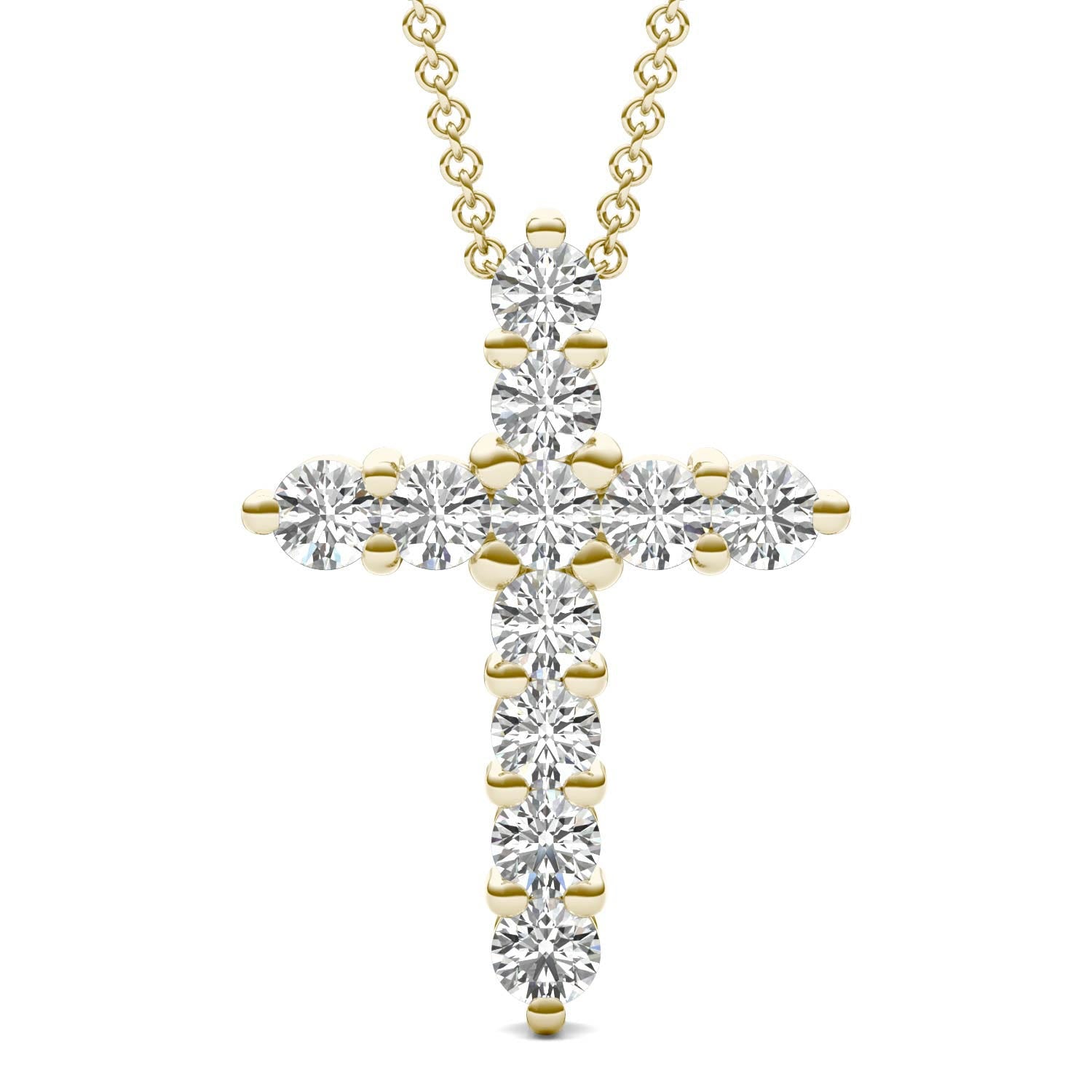 1 1/10 CTW Round Caydia Lab Grown Diamond Cross Necklace 18K Yellow Gold
