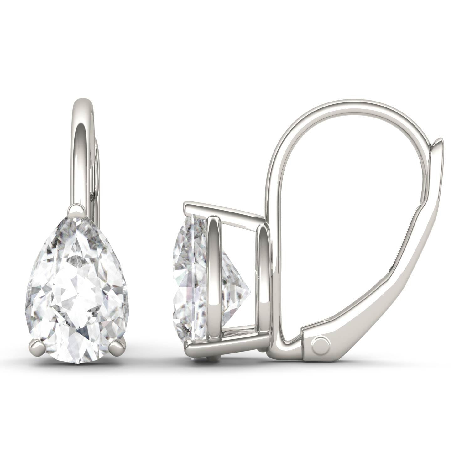 1.88 CTW DEW Pear Forever One Moissanite Drop Earrings in 14K White Gold