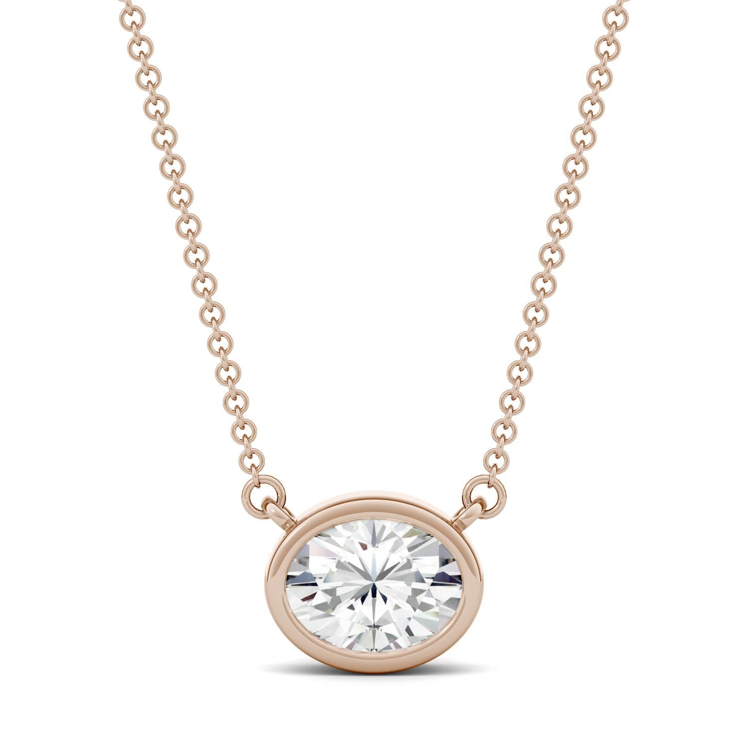 1.50 CTW DEW Oval Forever One Moissanite East-West Bezel Necklace in 14K Rose Gold