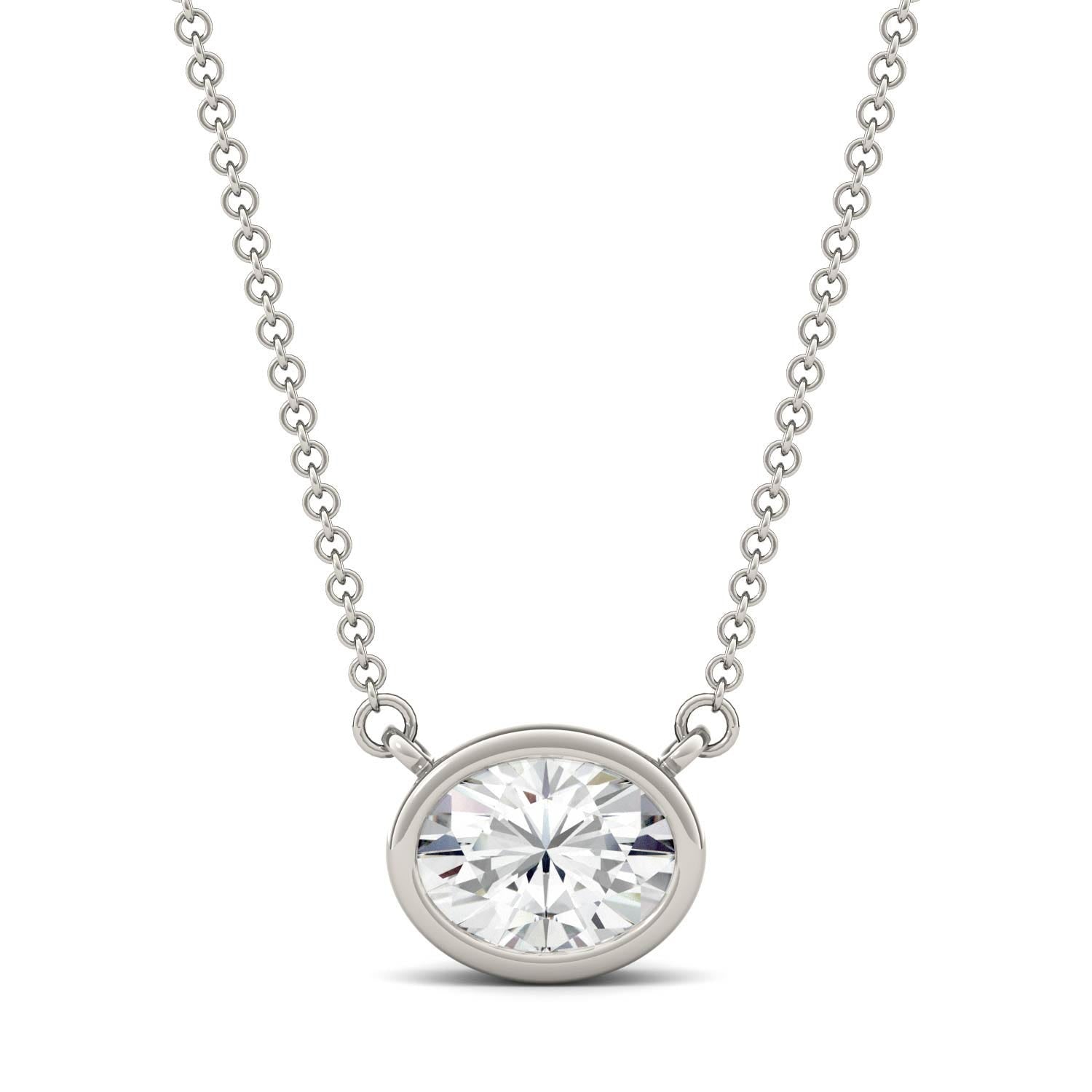 1.50 CTW DEW Oval Forever One Moissanite East-West Bezel Necklace in 14K White Gold