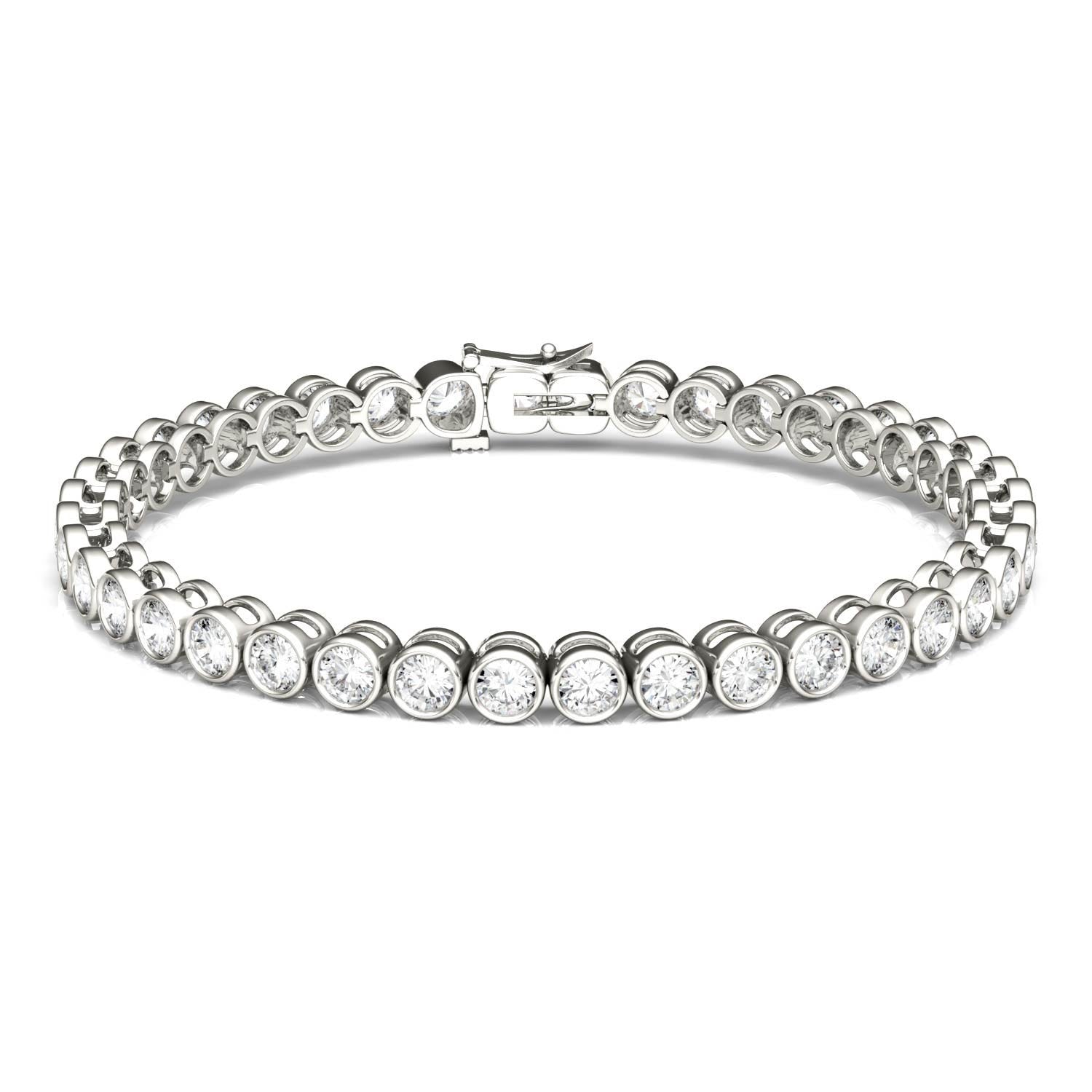 4.00 CTW DEW Round Forever One Moissanite Bezel Tennis Bracelet in 14K White Gold