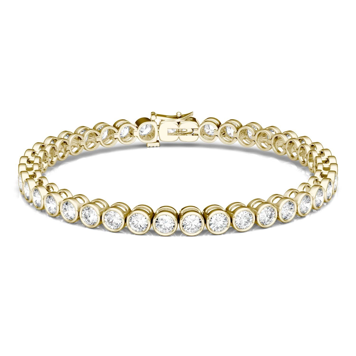 4.00 CTW DEW Round Forever One Moissanite Bezel Tennis Bracelet in 14K Yellow Gold