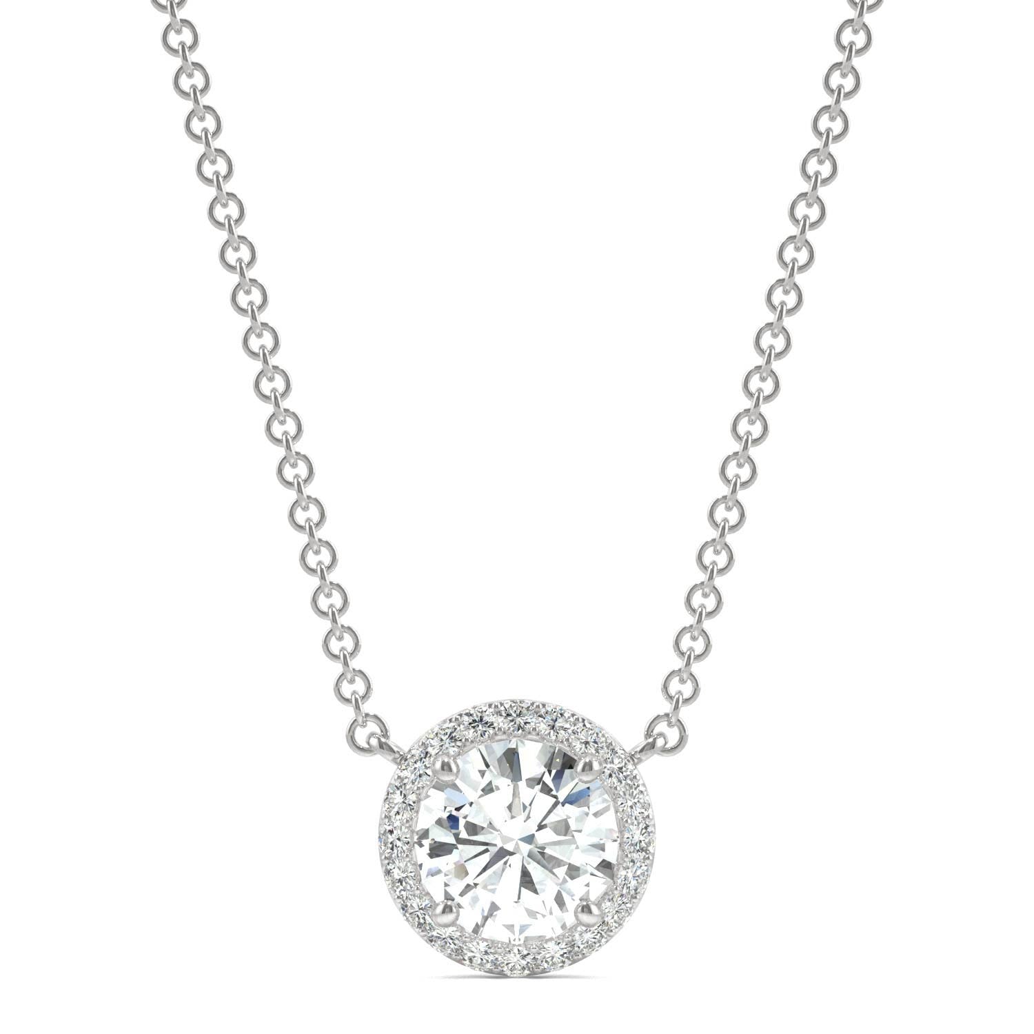 0.91 CTW DEW Round Forever One Moissanite Cluster Halo Signature Necklace in 14K White Gold