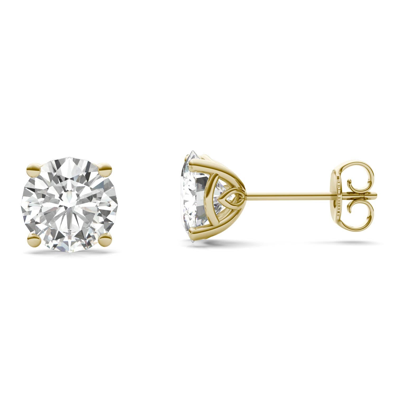 3.20 CTW DEW Round Forever One Moissanite Signature Basket Stud Earrings in 14K Yellow Gold