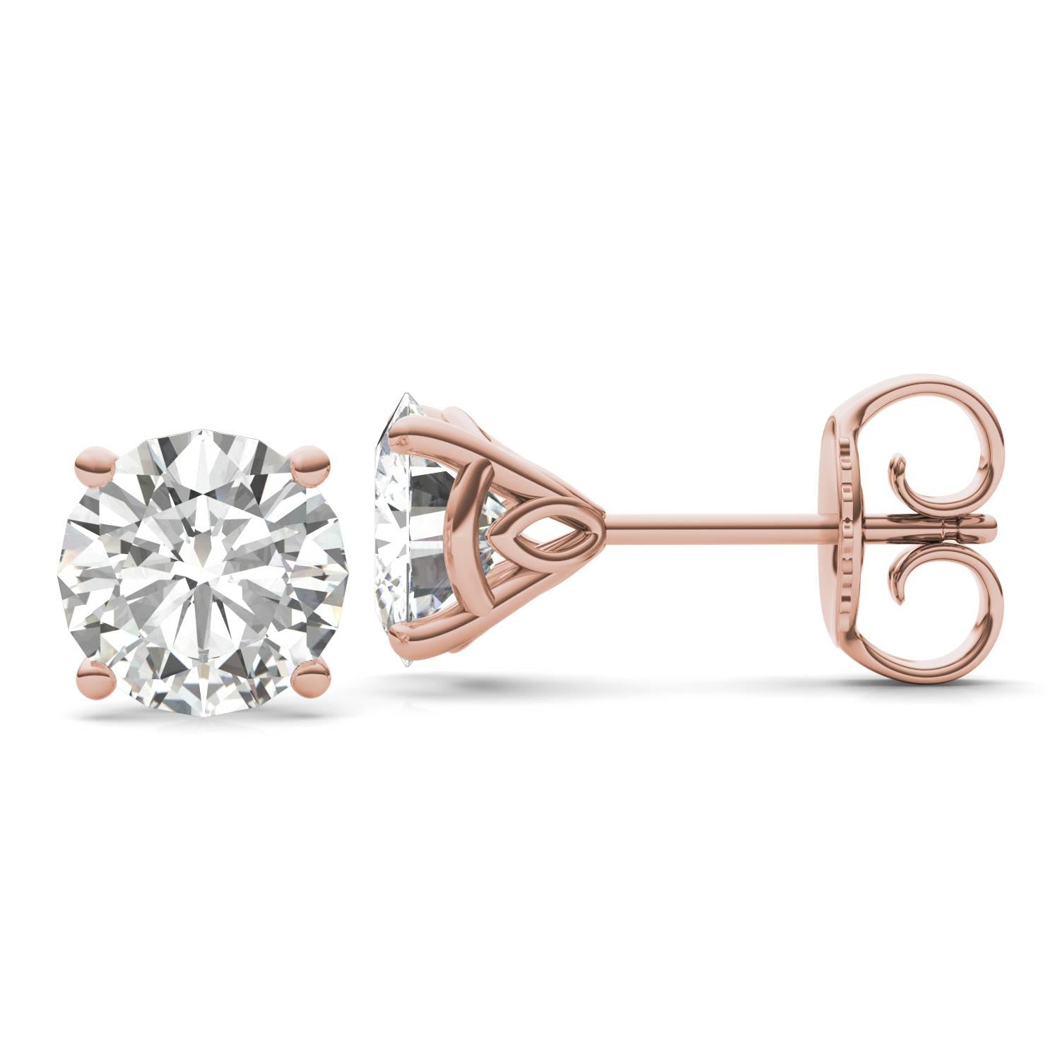 3.84 CTW DEW Round Forever One Moissanite Signature Martini Stud Earrings in 14K Rose Gold