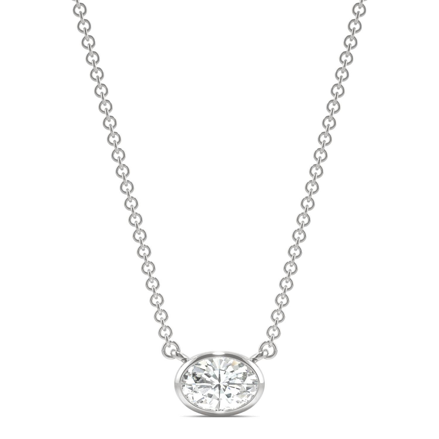0.51 CTW DEW Oval Forever One Moissanite Signature Bezel Necklace in 14K White Gold
