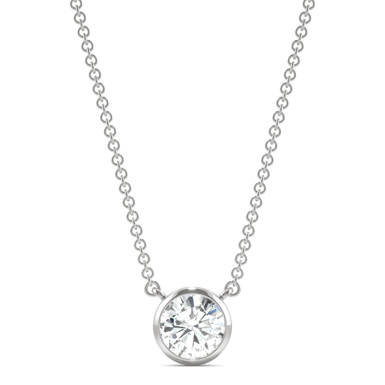 0.81 CTW DEW Round Forever One Moissanite Signature Bezel Necklace in 14K White Gold