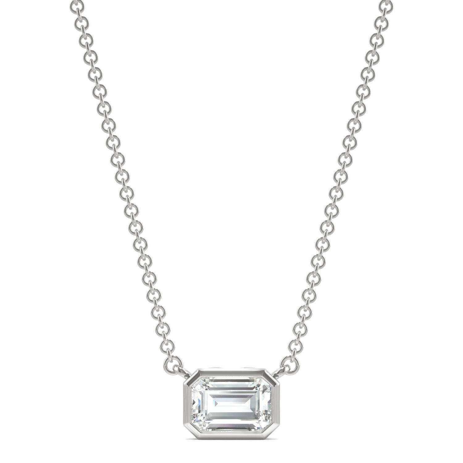 0.59 CTW DEW Emerald Forever One Moissanite Signature Bezel Necklace in 14K White Gold