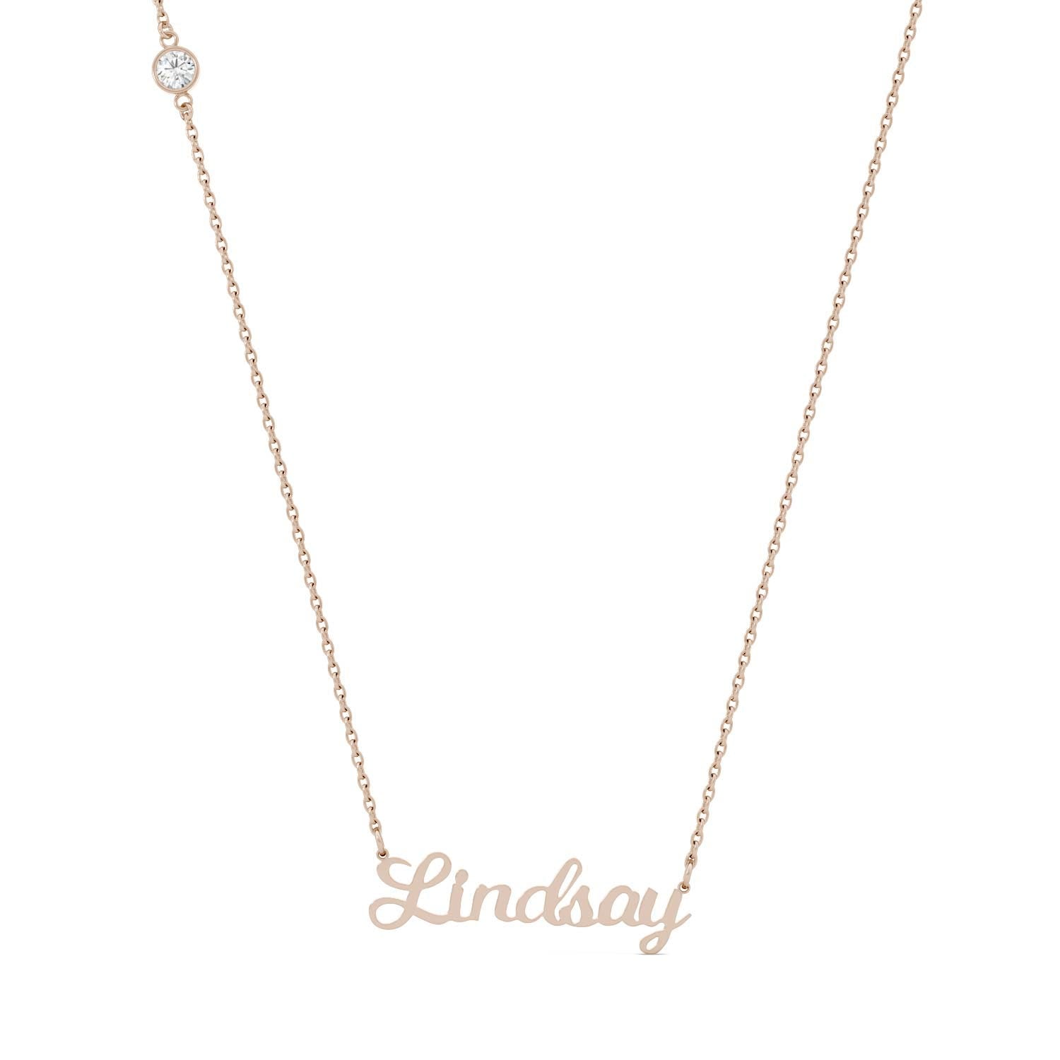 Custom Script Name Necklace in 14K Rose Gold with Forever One Moissanite Accent