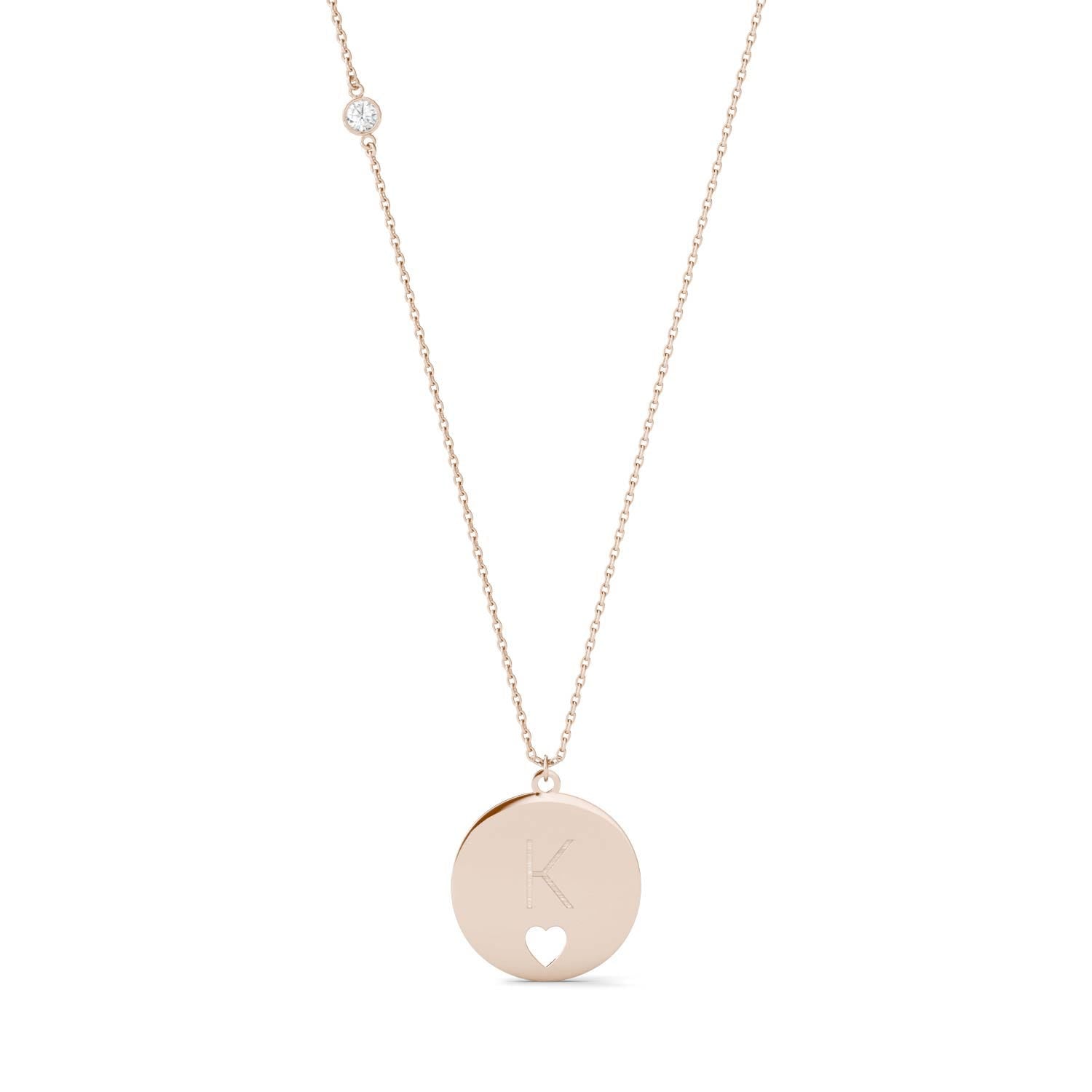 Personalized Block Initial Heart Necklace in 14K Rose Gold with Forever One Moissanite Accent