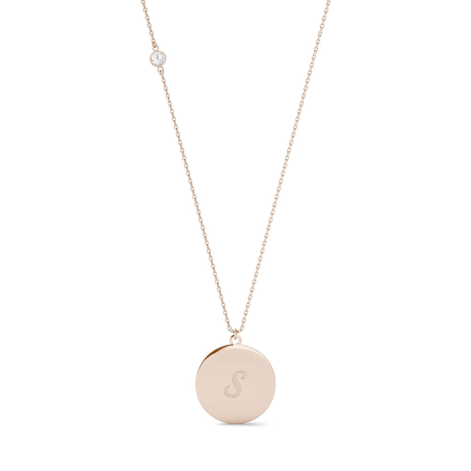 Personalized Script Initial Necklace in 14K Rose Gold with Forever One Moissanite Accent