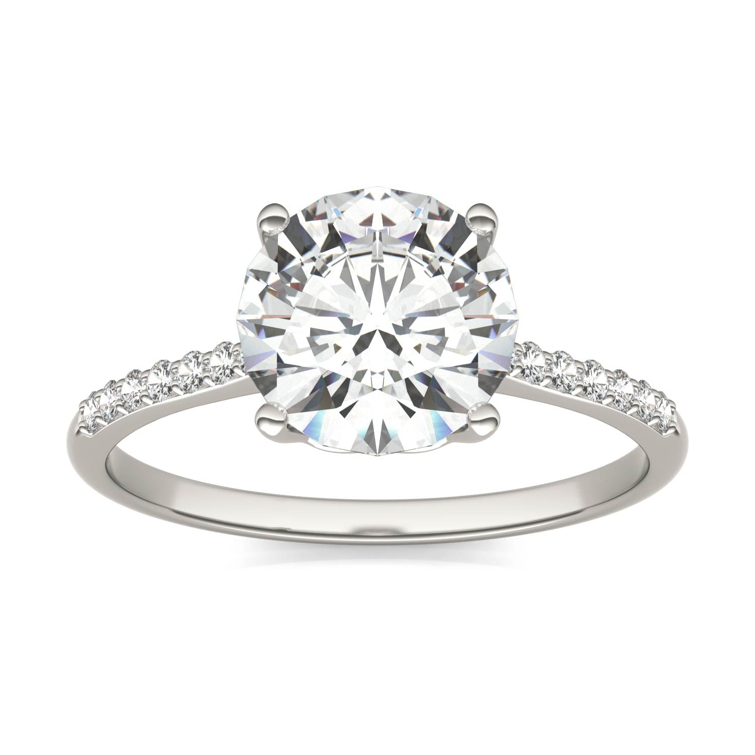 2.07 CTW DEW Round Forever One Moissanite Signature Side Stone Round Engagement Ring in 14K White Gold