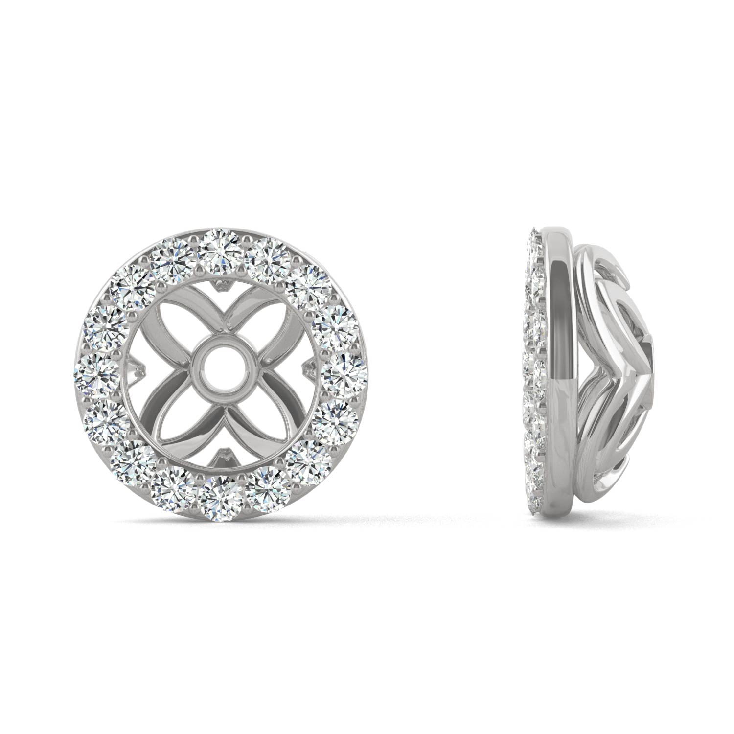 0.32 CTW DEW Round Forever One Moissanite Signature Floret Earring Jackets Earrings in 14K White Gold
