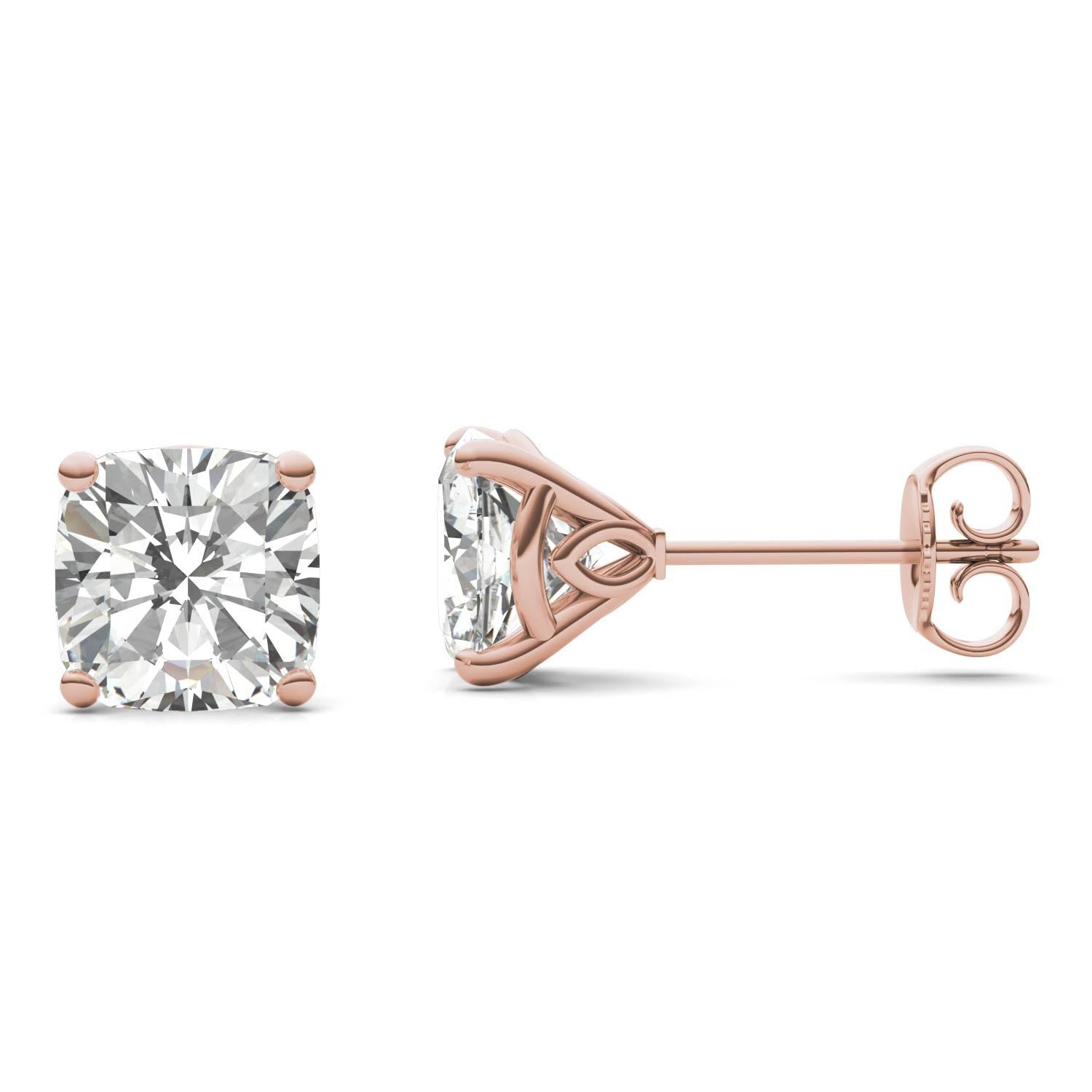 3.16 CTW DEW Cushion Forever One Moissanite Signature Martini Moissanite Stud Earrings in 14K Rose Gold