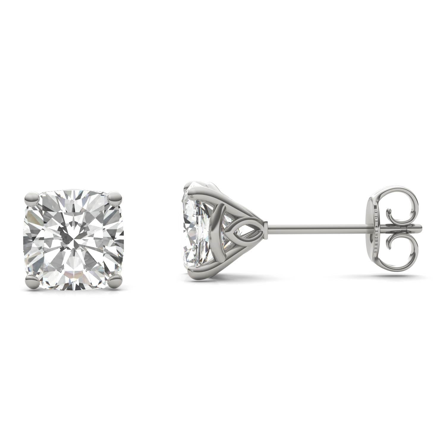 2.57 CTW DEW Cushion Forever One Moissanite Signature Martini Moissanite Stud Earrings in 14K White Gold