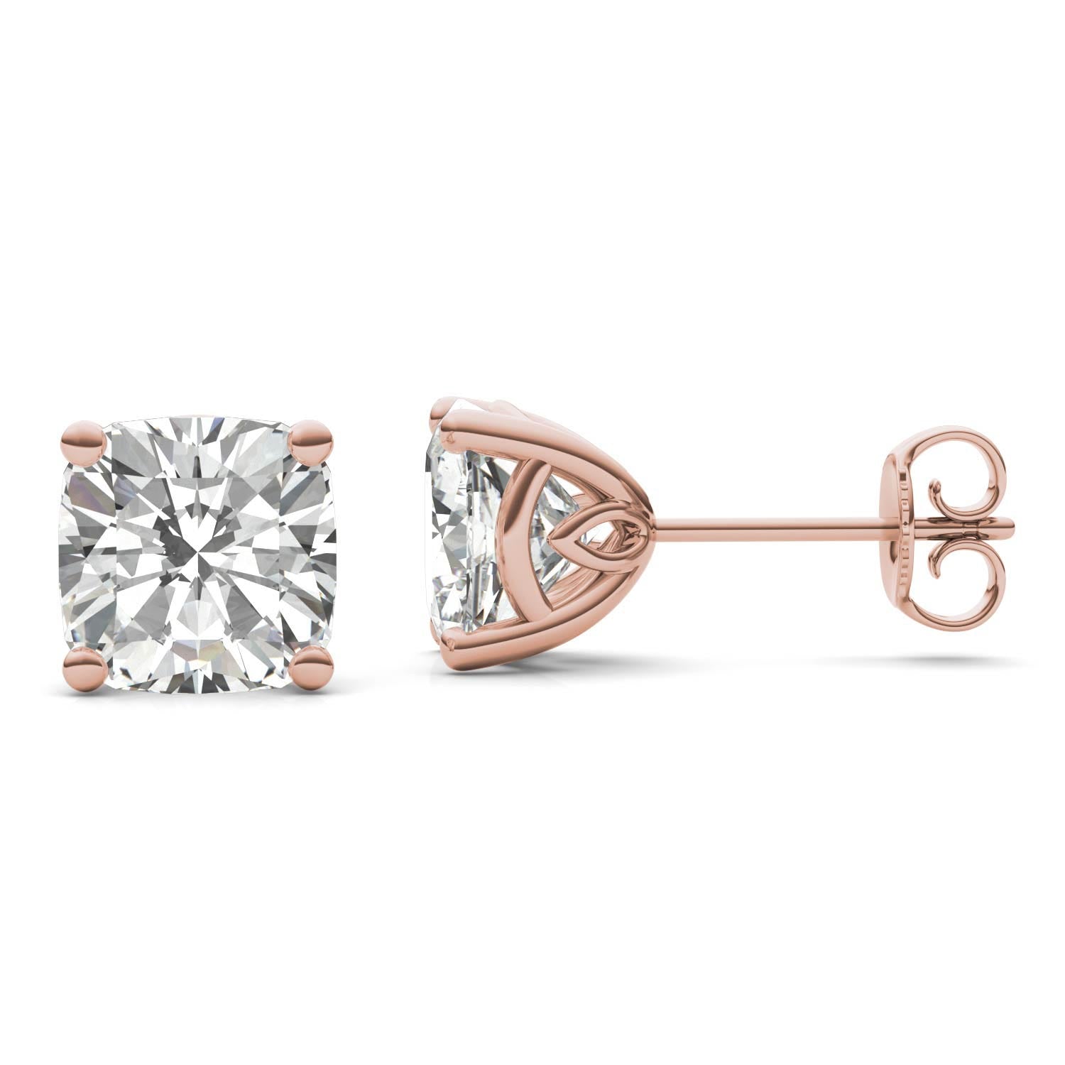 3.82 CTW DEW Cushion Forever One Moissanite Signature Basket Moissanite Stud Earrings in 14K Rose Gold