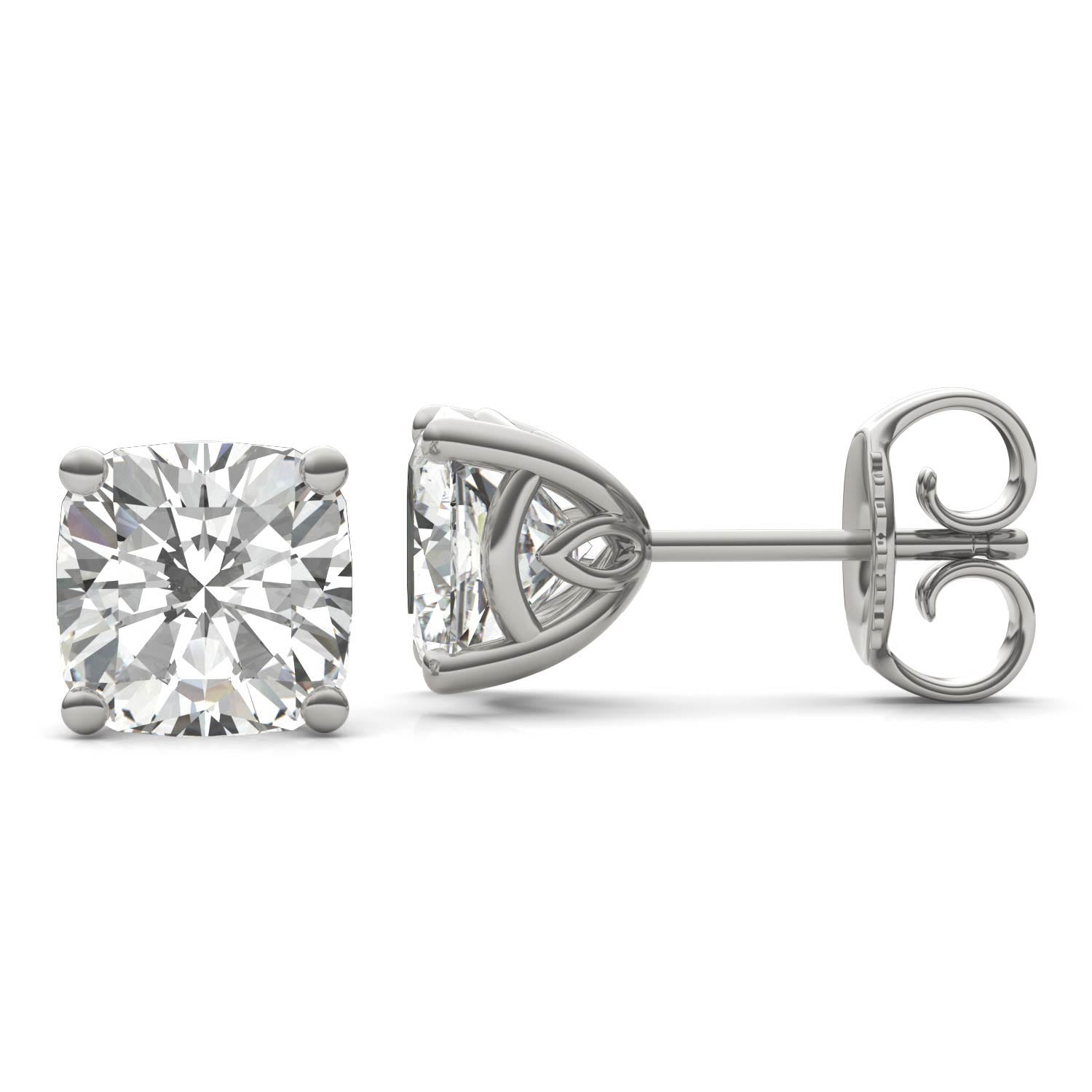 4.57 CTW DEW Cushion Forever One Moissanite Signature Basket Moissanite Stud Earrings in 14K White Gold