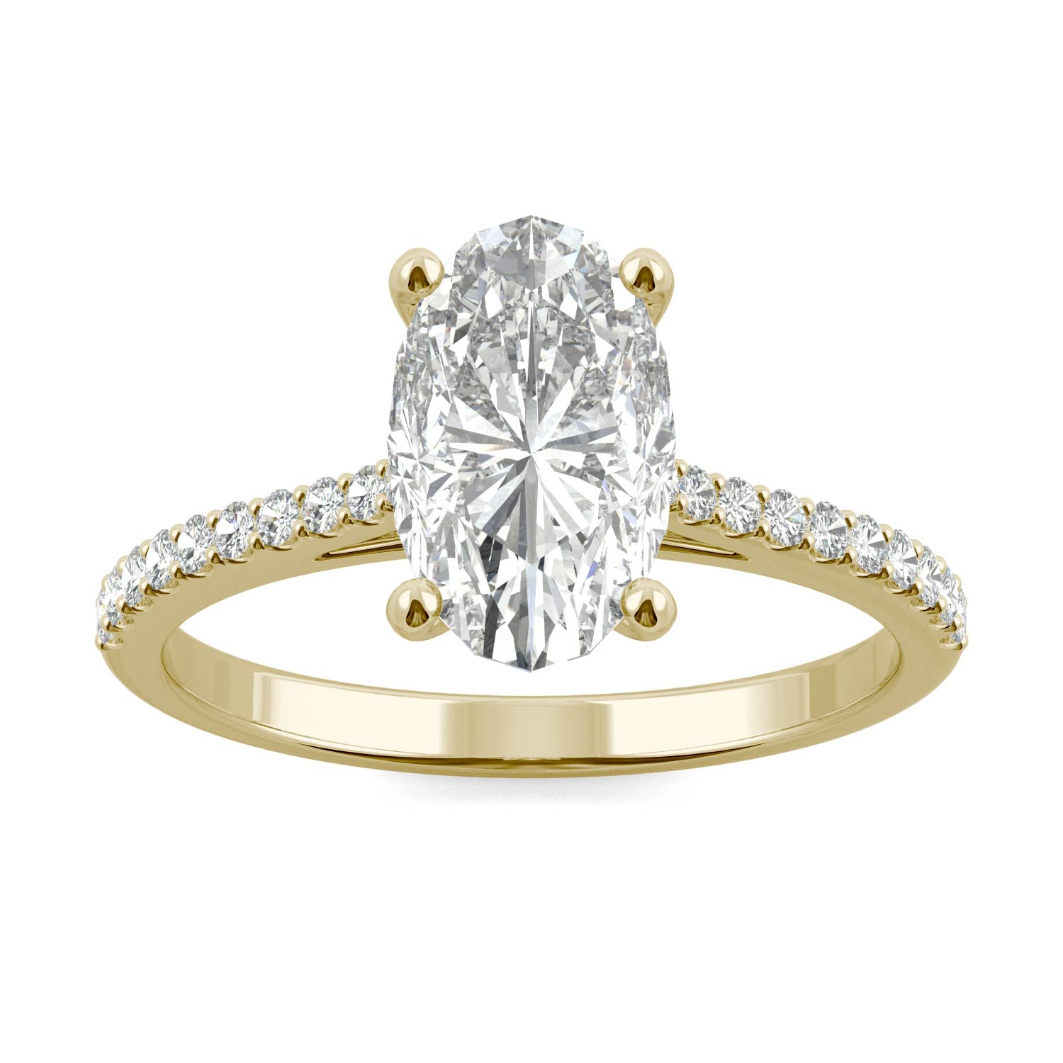 2.49 CTW DEW Elongated Oval Forever One Moissanite Side-Stone Engagement Ring in 14K Yellow Gold