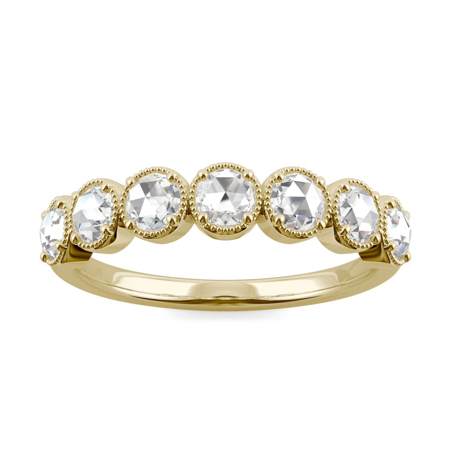 0.49 CTW DEW Round Forever One Moissanite Seven Stone Milgrain Band in 14K Yellow Gold