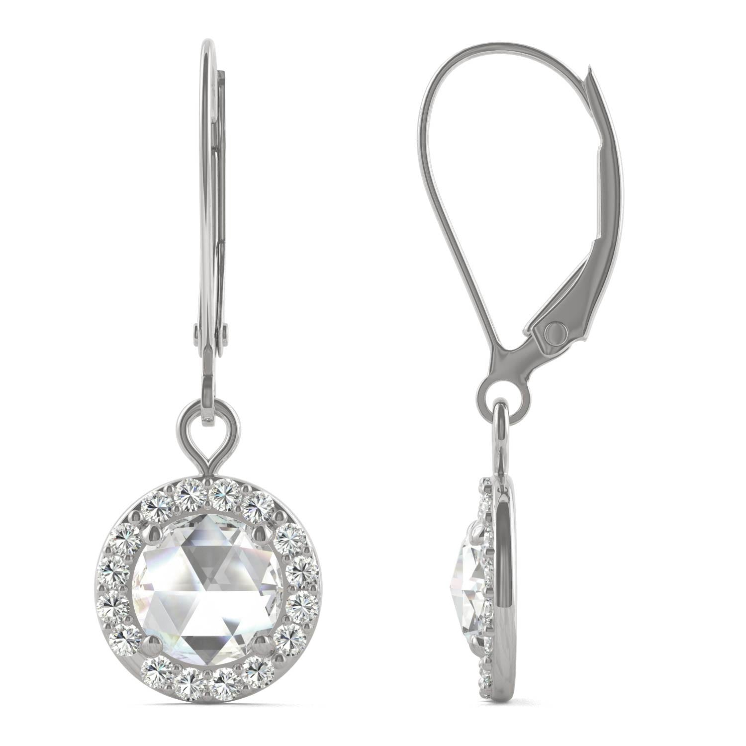 1.20 CTW DEW Round Forever One Moissanite Halo Drop Earrings in 14K White Gold