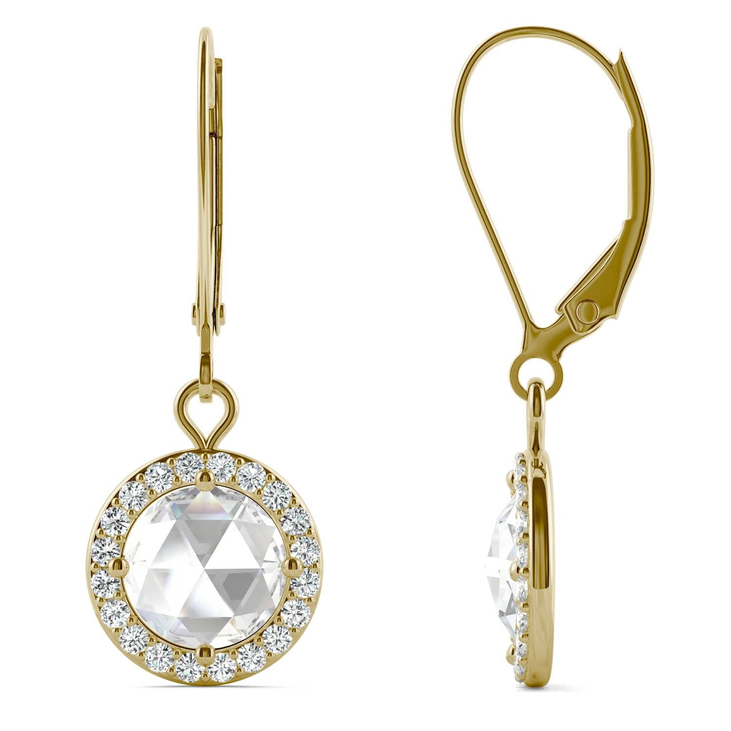 1.52 CTW DEW Round Forever One Moissanite Halo Drop Earrings in 14K Yellow Gold