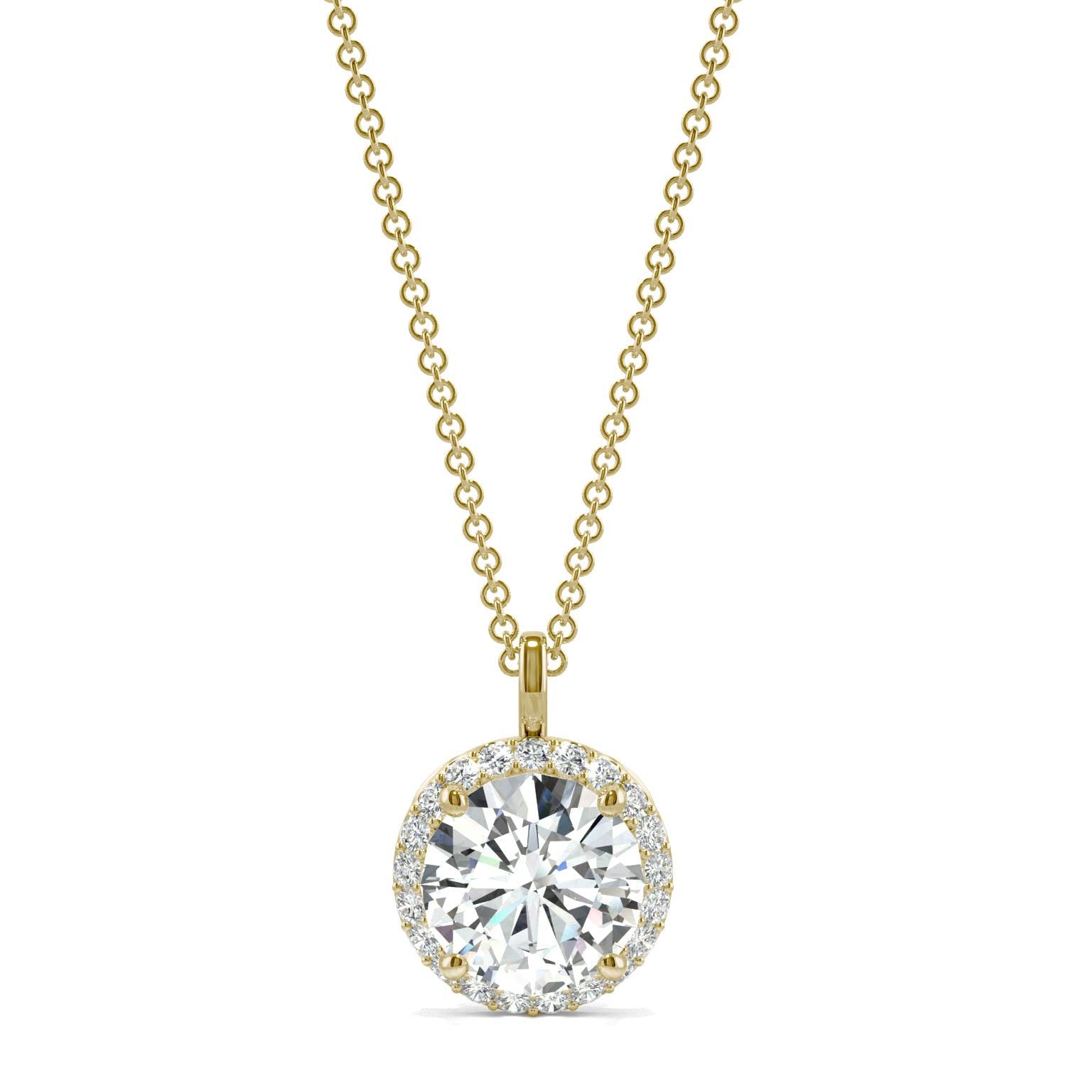 2.13 CTW DEW Round Forever One Moissanite Signature Halo Pendant in 14K Yellow Gold