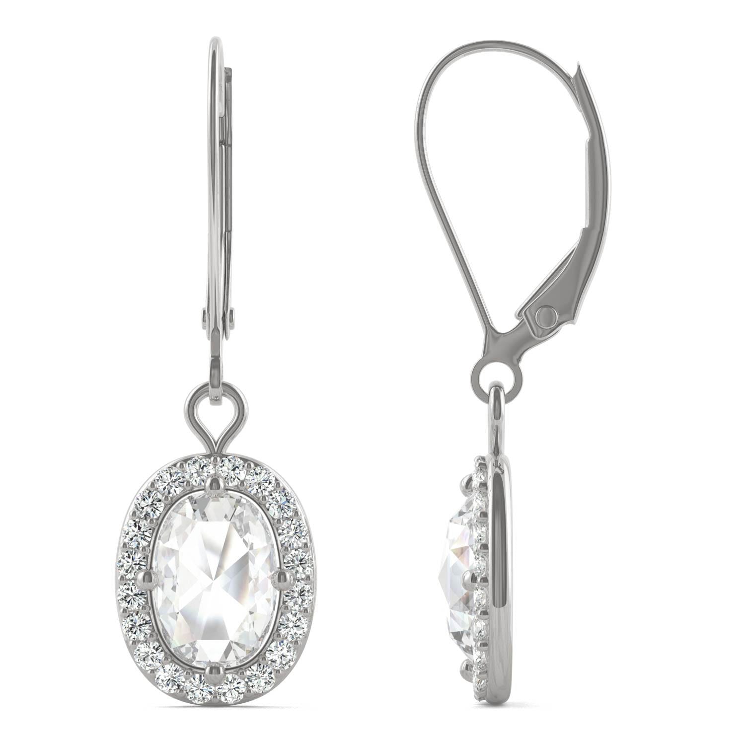 1.40 CTW DEW Cushion Forever One Moissanite Halo Drop Earrings in 14K White Gold
