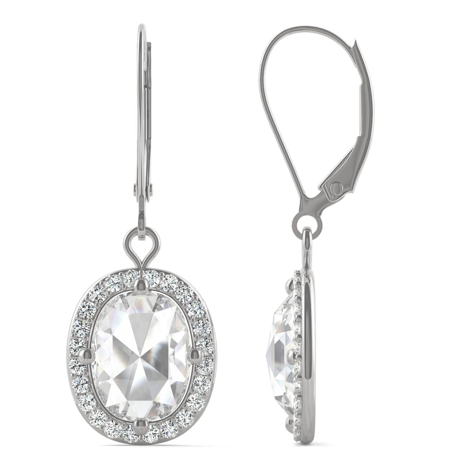2.98 CTW DEW Cushion Forever One Moissanite Halo Drop Earrings in 14K White Gold