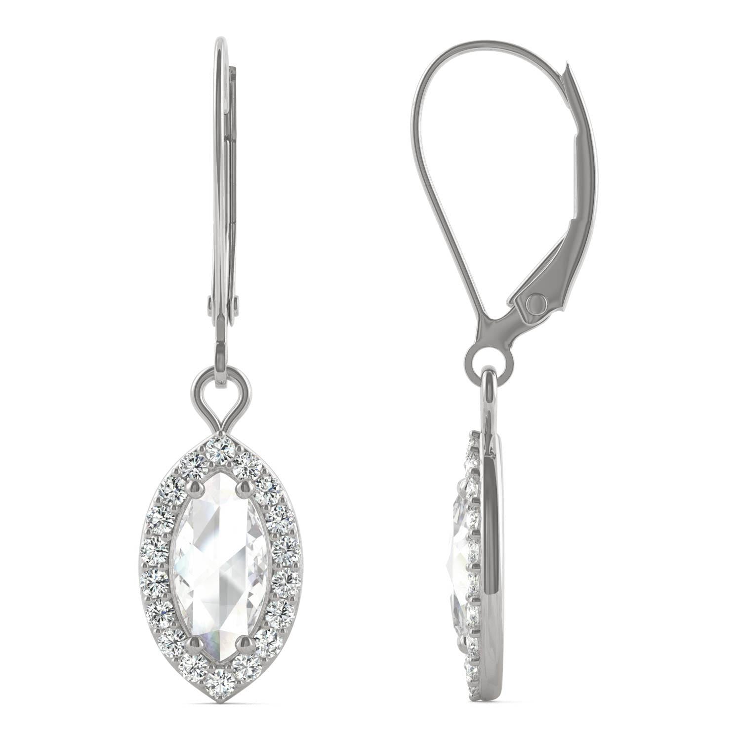 0.95 CTW DEW Marquise Forever One Moissanite Halo Drop Earrings in 14K White Gold