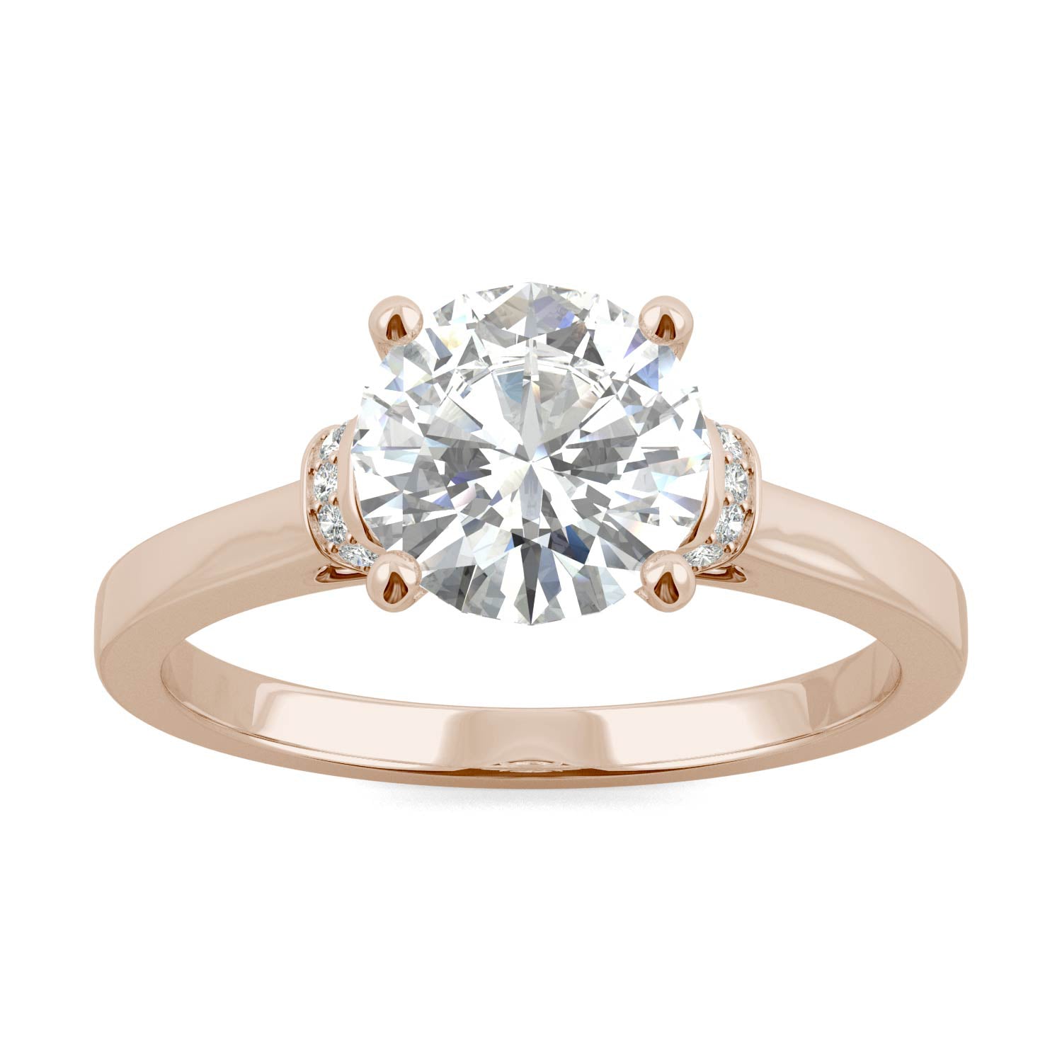 1.69 CTW DEW Round Forever One Moissanite Hidden Solitaire with Side Accents Ring in 14K Rose Gold