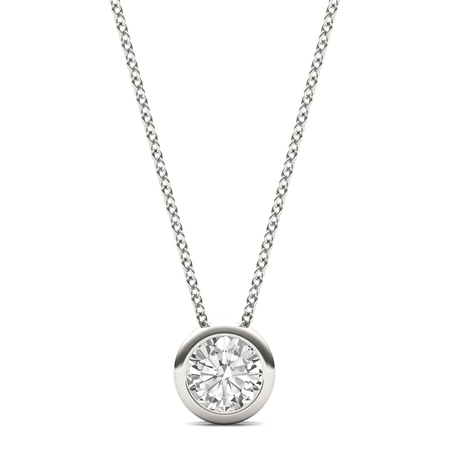 0.51 CTW DEW Round Forever One Moissanite Bezel Set Solitaire Pendant in Platinum