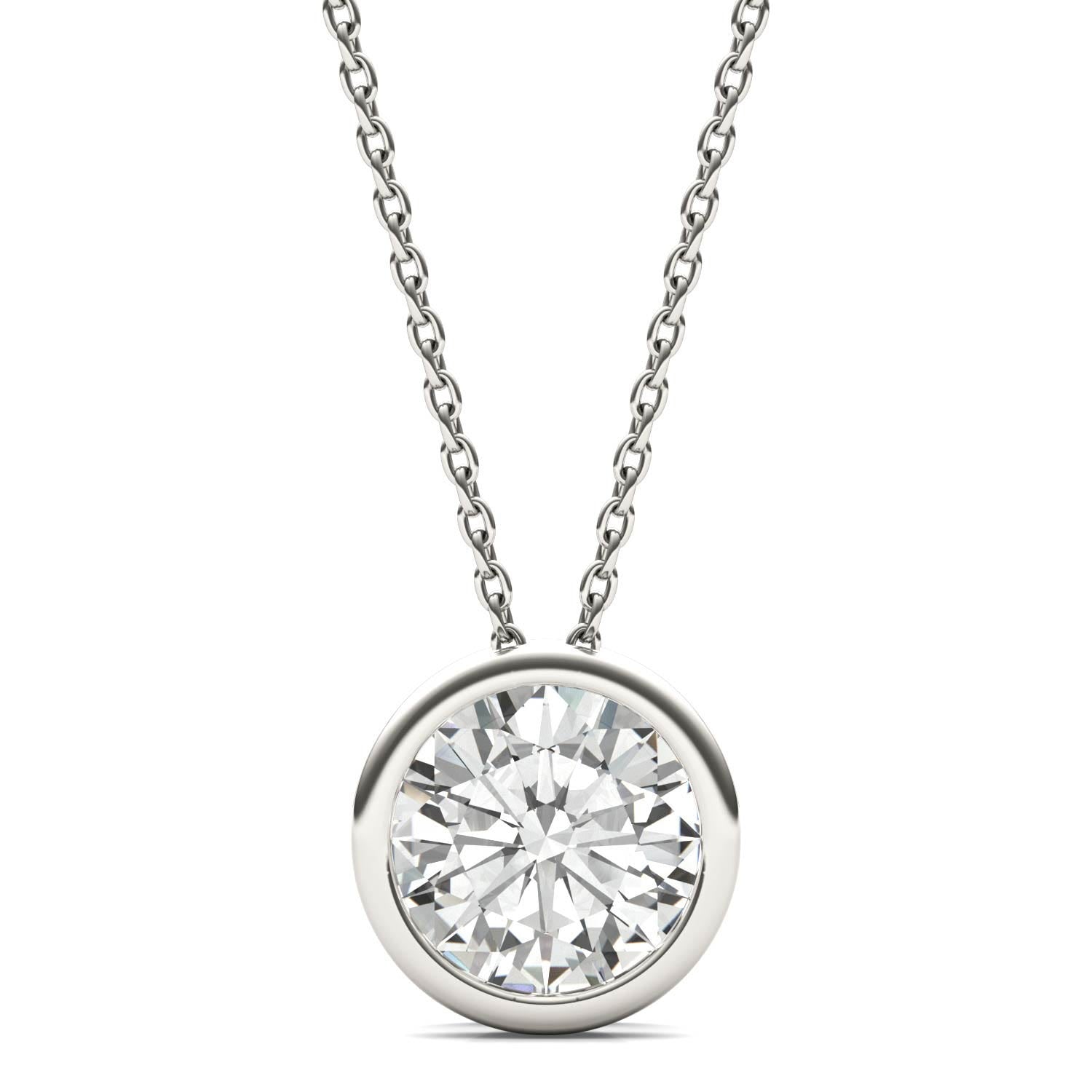 1.92 CTW DEW Round Forever One Moissanite Bezel Set Solitaire Pendant in Platinum