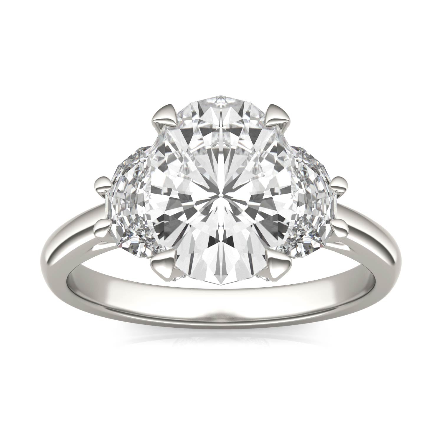 3.75 CTW DEW Oval Forever One Moissanite Half Moon Accented Engagement Ring in Platinum