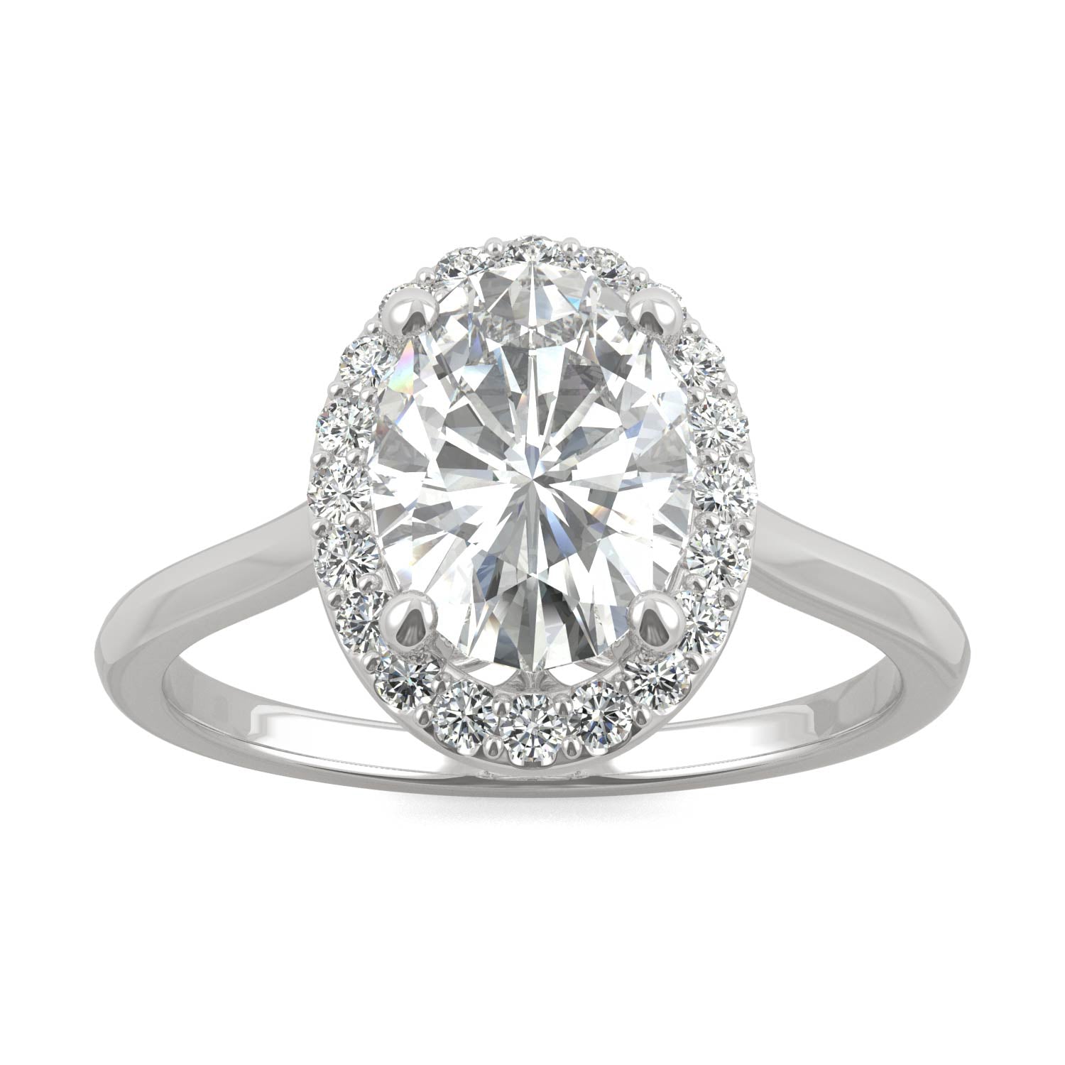 2.39 CTW DEW Oval Forever One Moissanite Signature Halo Engagement Ring in 14K White Gold