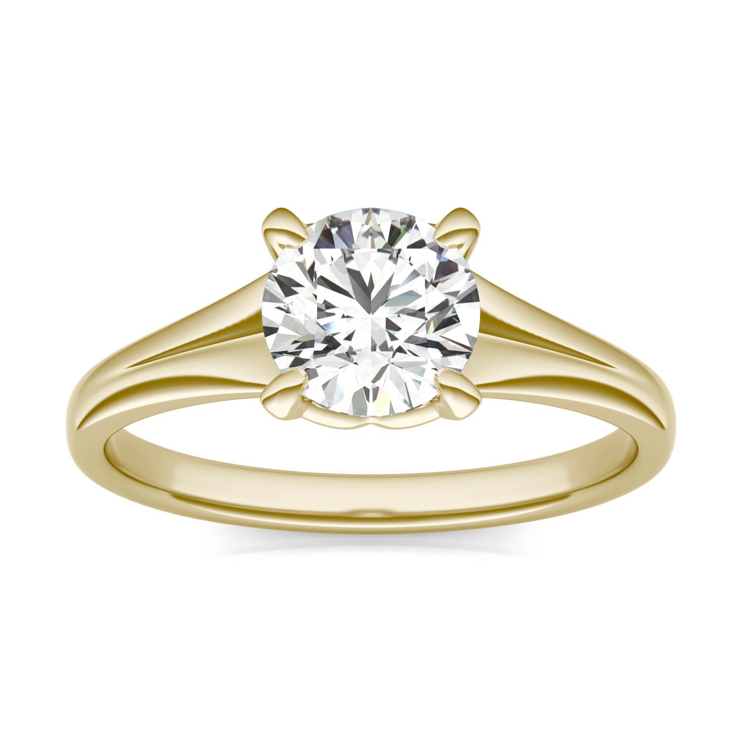 1 CTW Round Caydia Lab Grown Diamond Signature Tapered Solitaire Engagement Ring in 18K Yellow Gold