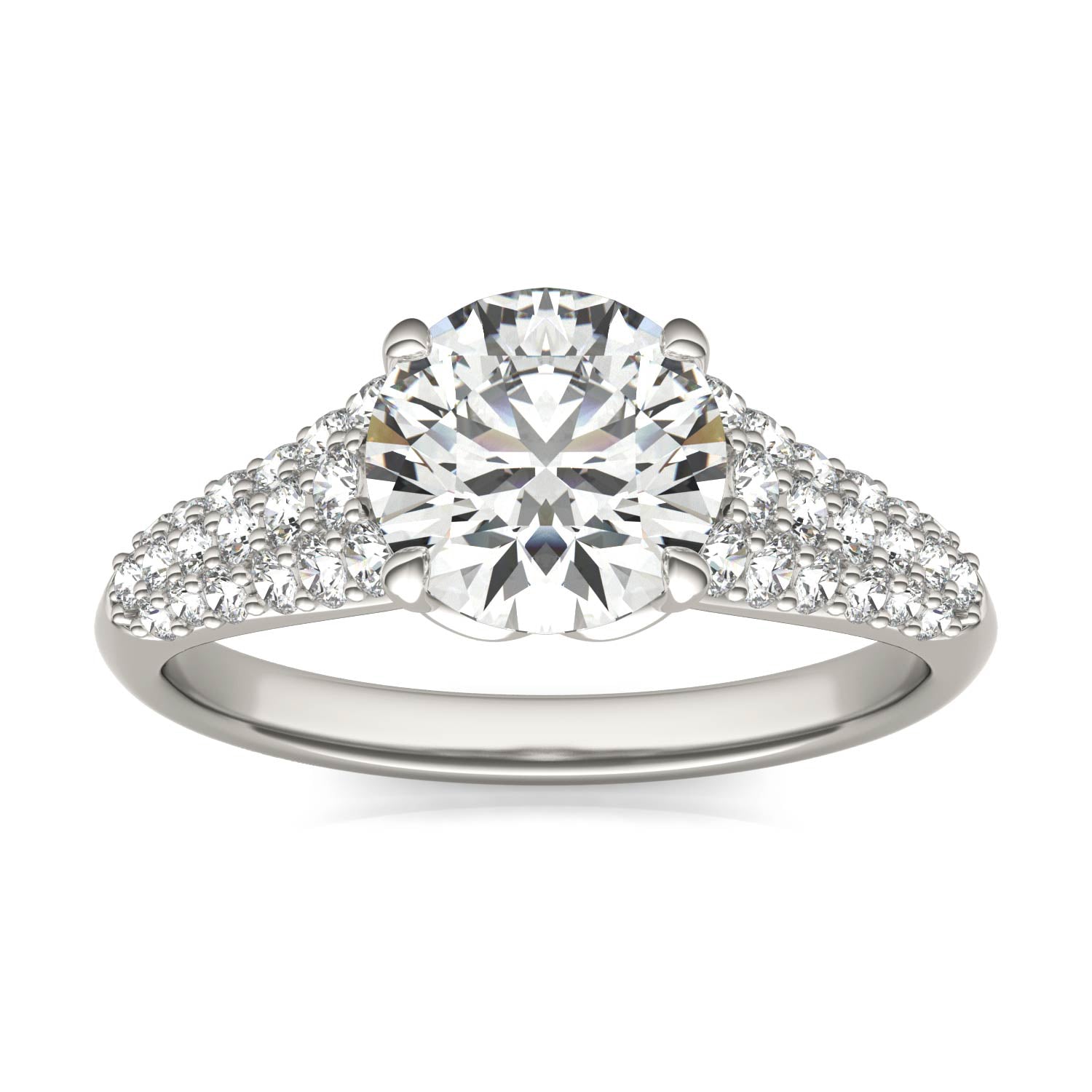 2 CTW Round Caydia Lab Grown Diamond Signature Multi Row Pave Engagement Ring 18K White Gold