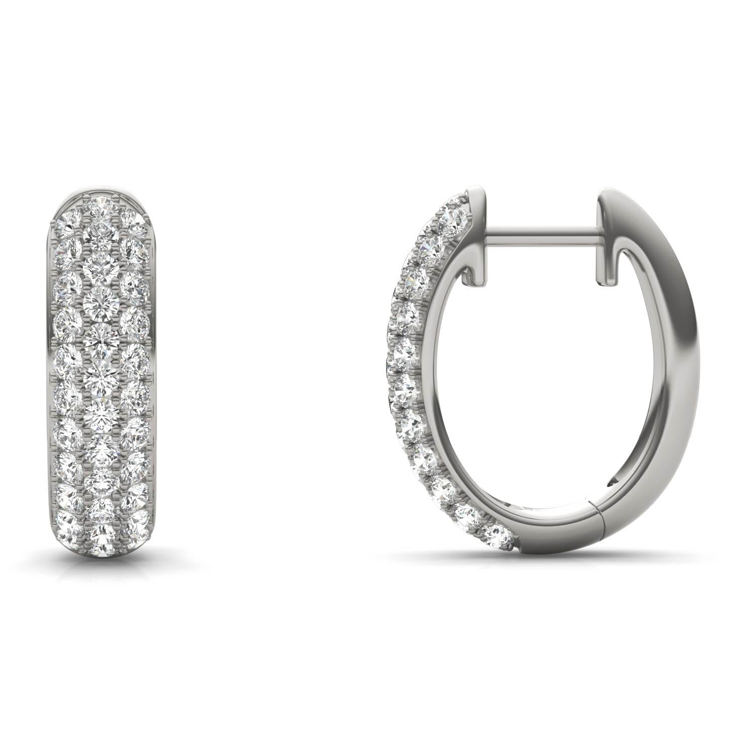 1 CTW Round Caydia Lab Grown Diamond Three Row Pave Hoop Earrings 14K White Gold