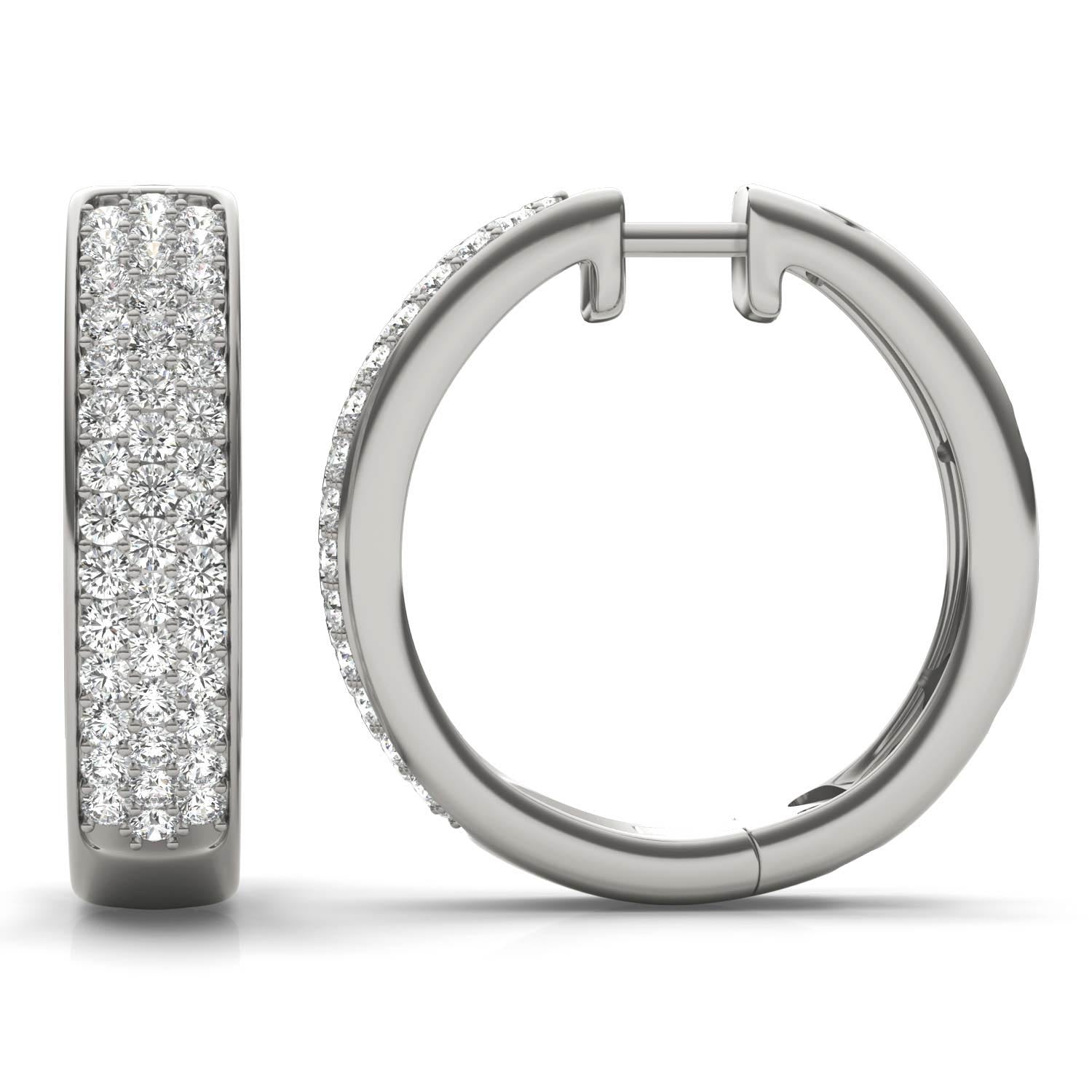 1 1/5 CTW Round Caydia Lab Grown Diamond Pave Hoop Earrings 14K White Gold