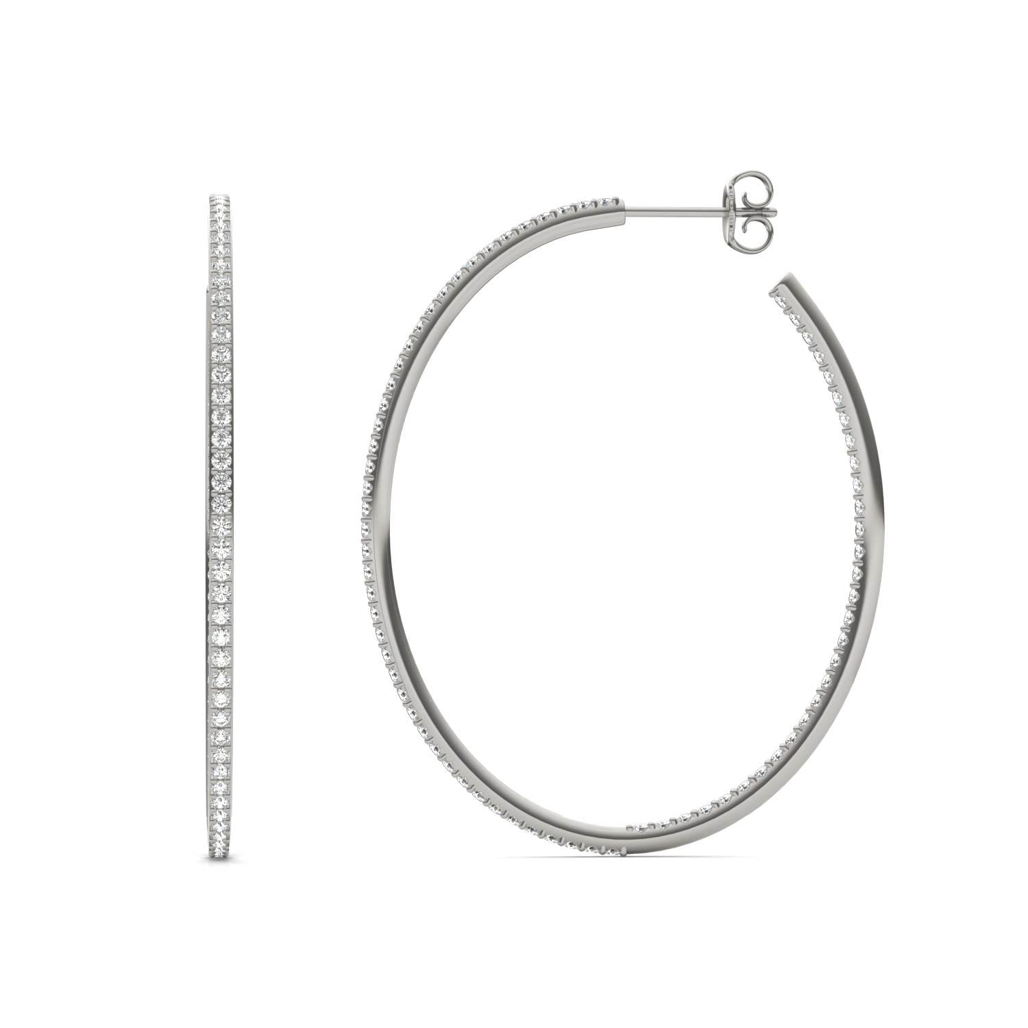 1 1/2 CTW Round Caydia Lab Grown Diamond Oval Inside Out Hoop Earrings 18K White Gold