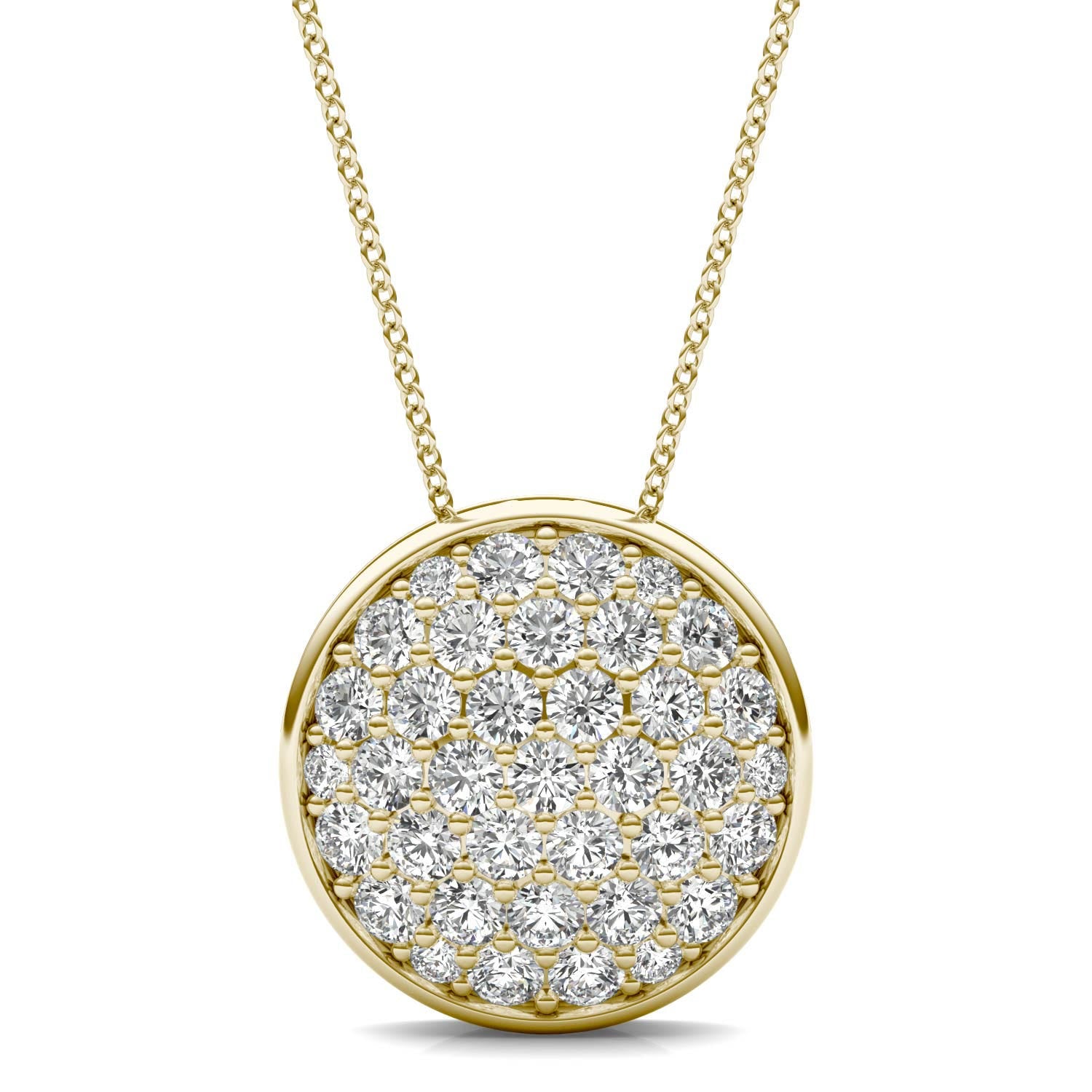 1 CTW Round Caydia Lab Grown Diamond Signature Pave Disc Necklace 18K Yellow Gold